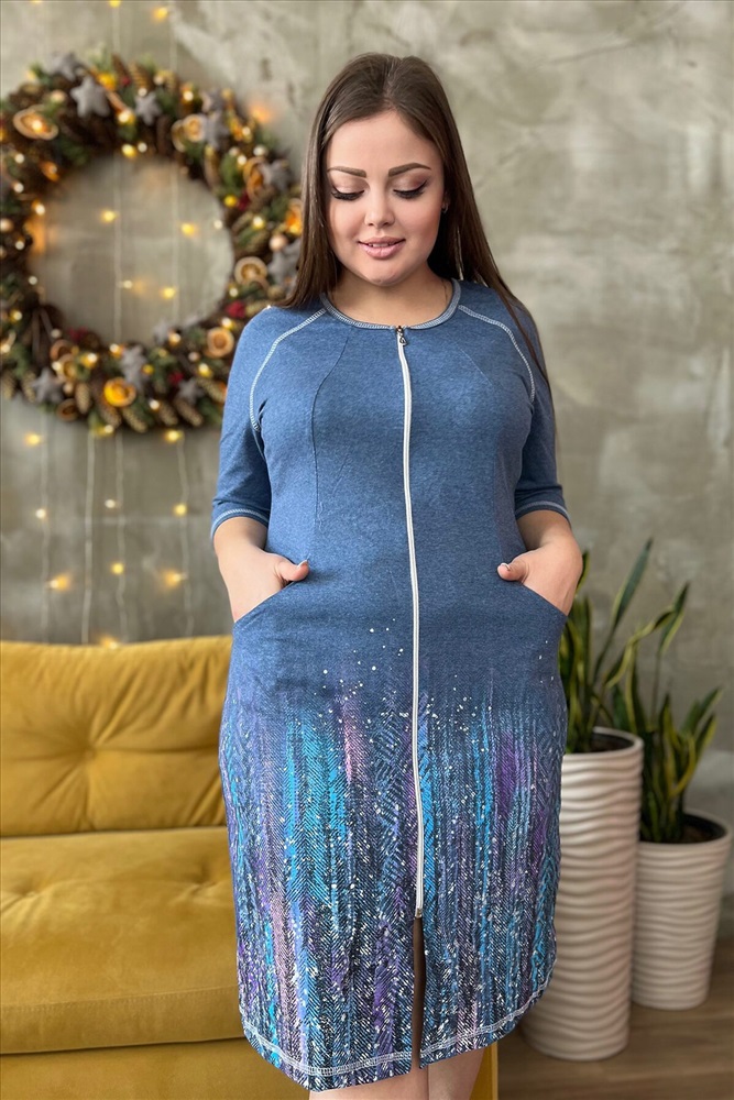 ID товара: 765349 Состав: Хлопок 70%, Полиэстер 30% Сезон: Демисезон Длина: прикрывает колено Фасон: Полуприлегающий Рукав: 3/4 Вид застежки: Молния Декоративные элементы: Принт Основная ткань: Хлопок | Кулирка Стиль: Повседневный Страна бренда: Россия Страна производства: Россия Халат полуприлегающего силуэта, средней длины, с округлой горловиной. Рукав реглан, длиной 3/4. Обработаны карманы в рельефах полочки. Горловина обработана бейкой. На модели 52 размер. Обратите внимание на разные варианты печати Комментарии к товару