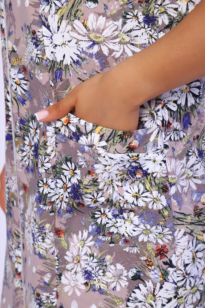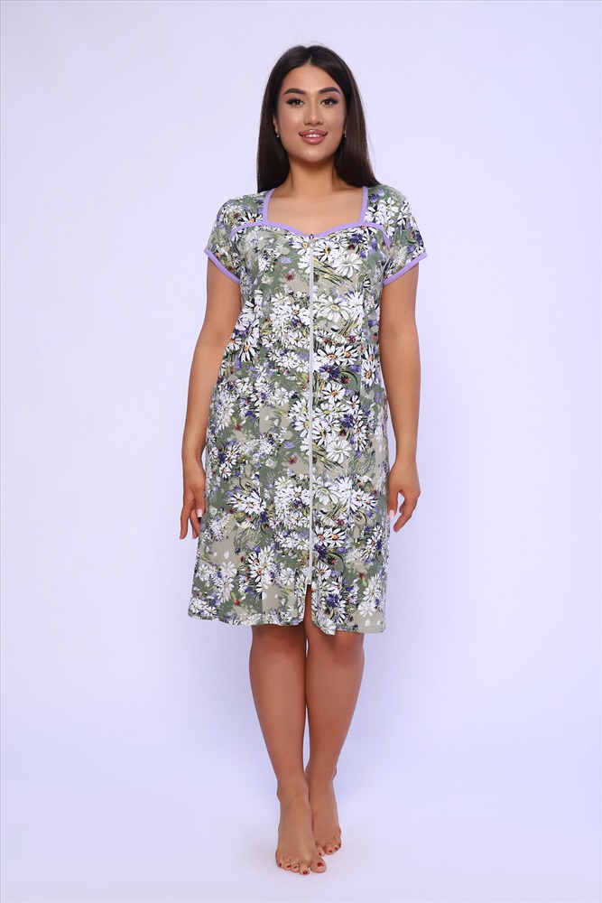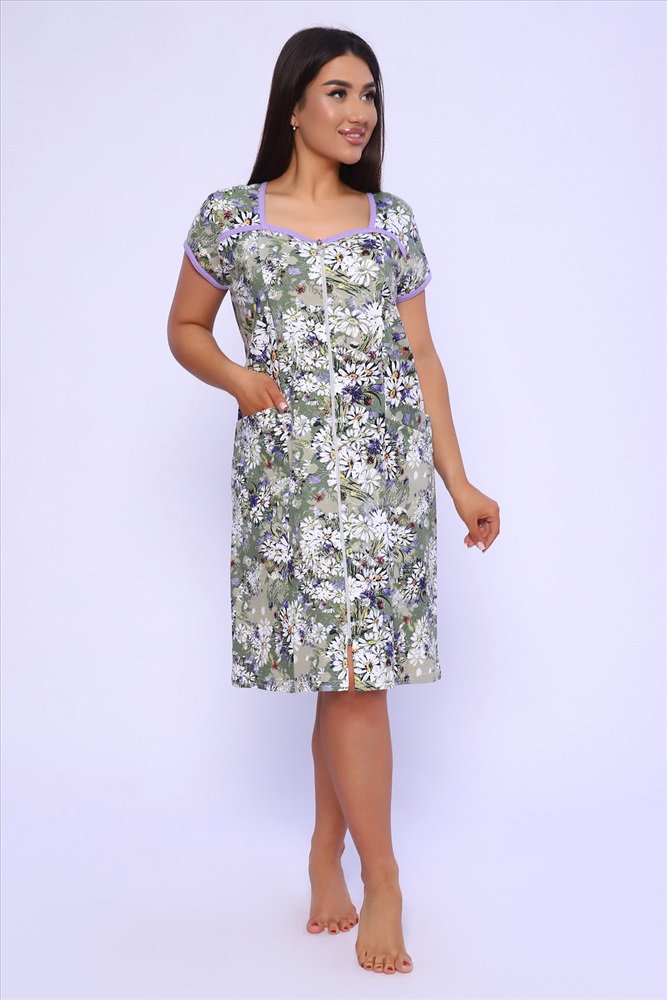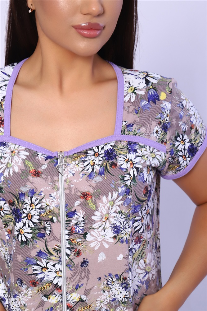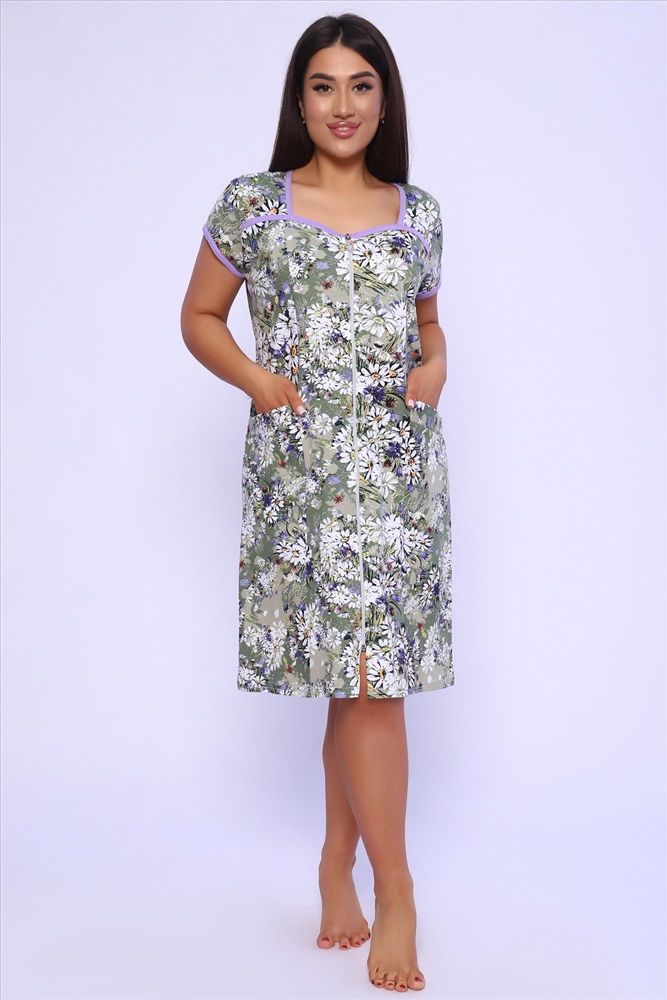 Состав: 100% хлопок Модель: Халат 85022 Тип товара: халат Материал: кулирка | кулирка Бренд: Натали Суслова Длина: средняя длина Карман: прорезные Назначение: для дачи | для дома НДС: 5% Отделка: с карманами Рисунок: цветы Рукав: короткий рукав Сезонность: лето | осень | весна | зима Силуэт: полуприлегающий Стиль: домашний Воротник: без воротника Застежка: молния Красивый женский халат на молнии. На полочках рельеф, который подчеркнет вашу фигуру. В рельефе карман. Рукав короткий. Горловина, кокетки и рукава обработаны бейкой из отделочной ткани. Халат прекрасно подойдет для дома, дачи и отдыха. А принт из луговых цветов придаст вам летнее настроение. Таблица размеров и веса