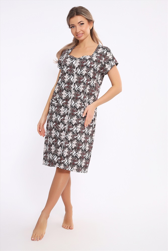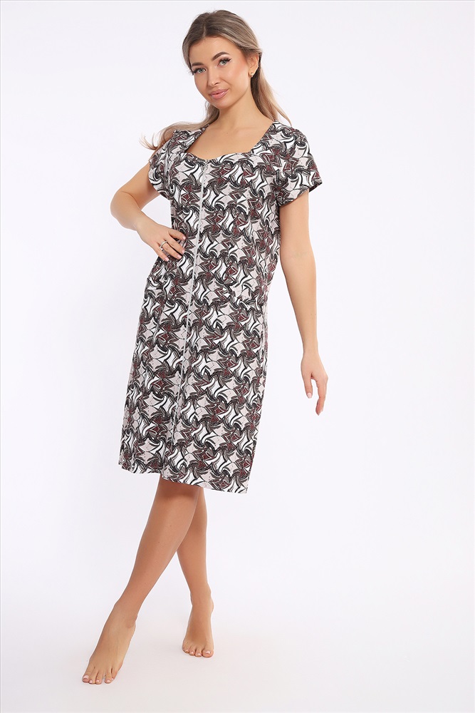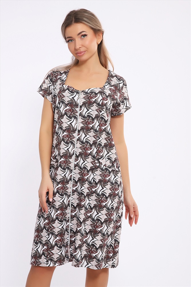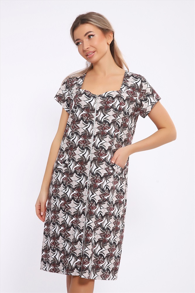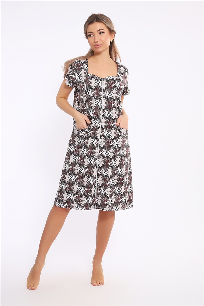 Застежка: молния Женский халат на молнии. На полочках рельеф, который подчеркнет вашу фигуру. В рельефе карман. Рукав короткий. Красивый вырез на полочке. Халат прекрасно подойдет для дома, дачи и отдыха.
