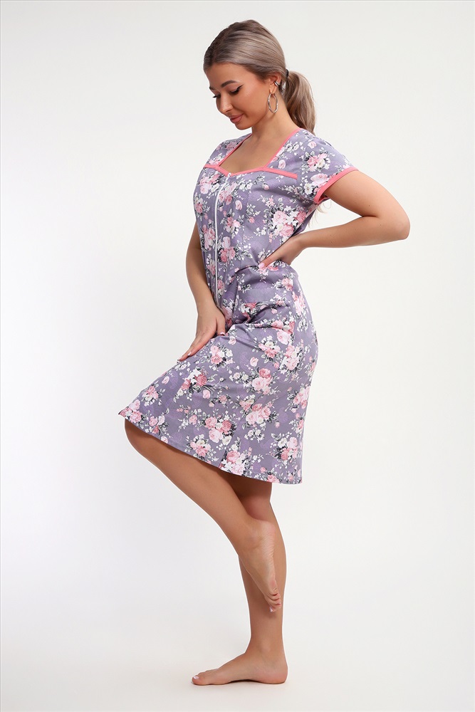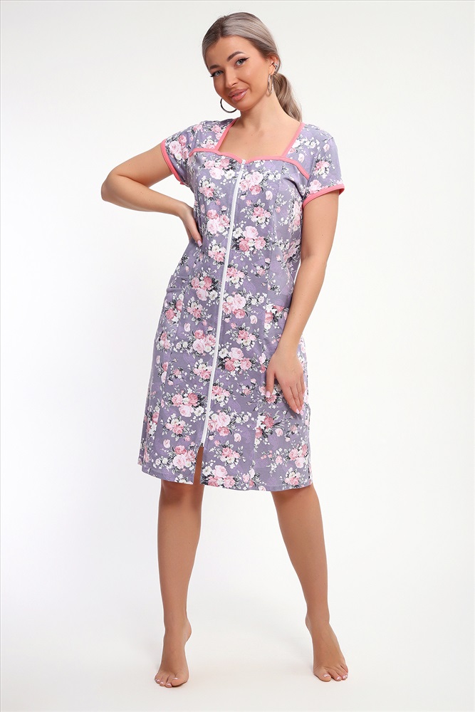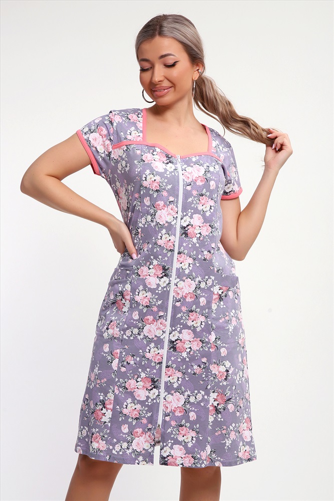 Состав: 100% хлопок Модель: Халат 85037 Тип товара: халат Материал: кулирка | кулирка Бренд: Натали Суслова Длина: средняя длина Карман: боковые | накладные Назначение: для дома НДС: 5% Отделка: с карманами Рисунок: цветы Рукав: короткий рукав Сезонность: лето | осень | весна | зима Силуэт: свободный | трапеция Стиль: домашний Воротник: без воротника Застежка: молния Красивый женский халат на молнии. На полочках рельеф, который подчеркнет вашу фигуру. В рельефе карман. Рукав короткий. Горловина, кокетки и рукава обработаны бейкой из отделочной ткани. Халат прекрасно подойдет для дома, дачи и отдыха. Таблица размеров и веса