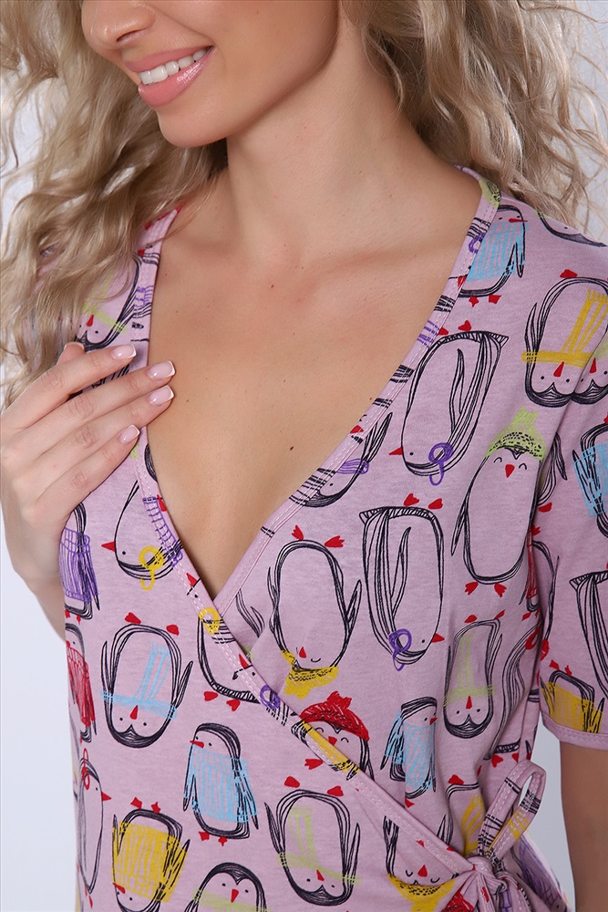 Состав: 100% хлопок Модель: Халат 89331 Тип товара: халат Материал: кулирка | кулирка Бренд: Натали Суслова Карман: боковые Назначение: для дома НДС: 5% Отделка: с карманами Рейтинг: Рейтинг 4 и выше Рисунок: зверюшки Рукав: короткий рукав Сезонность: лето | осень | весна | зима Силуэт: прямой Стиль: домашний Воротник: без воротника Застежка: на запах Халат запашной полуприлегающего силуэта с боковыми карманами и короткими рукавами. Комфортен для повседневной носки. Таблица размеров и веса