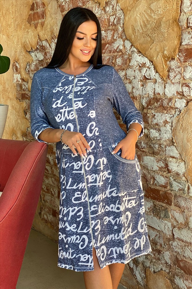 Страна производства: Россия Халат махровый женский полуприлегающего силуэта. Застежка на тесьму-молнию. Рукав втачной. На полочке кокетки и рельефы. На нижней части полочки накладные карманы. Спинка состоит из верхней, нижней части и кокетки. Круглый вырез горловины и вход в карман обработан окантовкой с белым кантом.