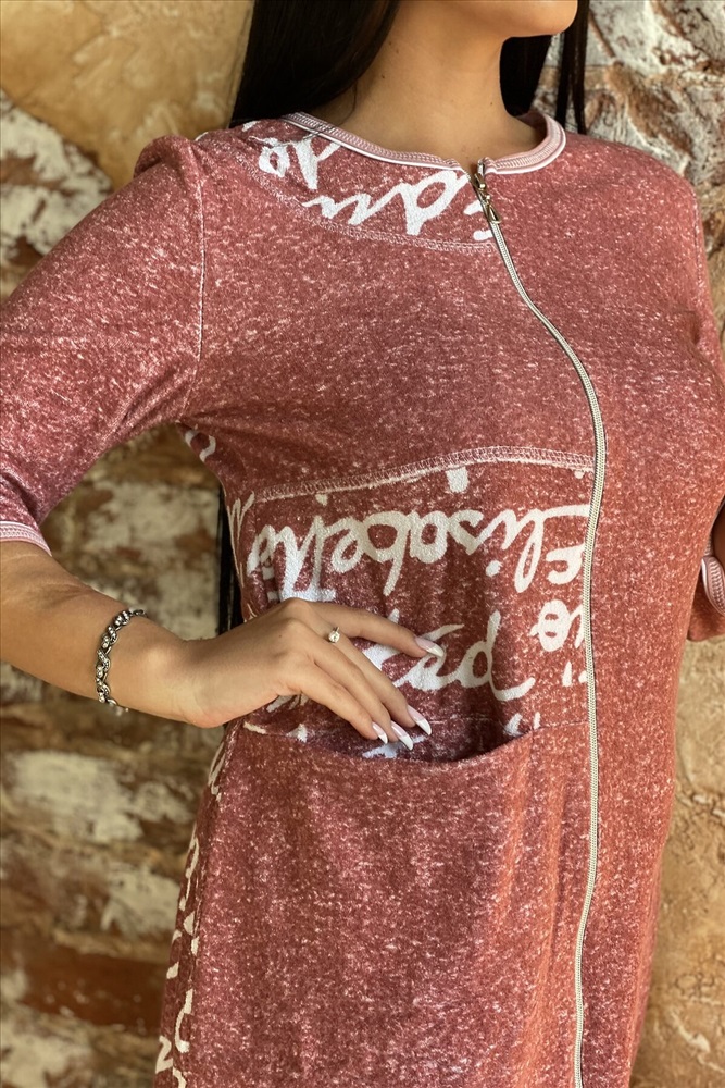 Страна производства: Россия Халат женский махровый полуприлегающего силуэта, слегка расширенный к низу. Застежка на тесьму-молнию. Рукав втачной 3/4. Халат с асимметричными вставками на полочках. На полочке внутренний карман в горизонтальном шве притачивания средней и нижней части полочки.