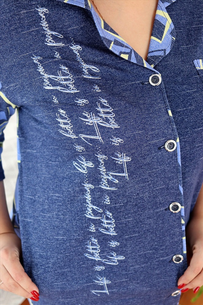 Страна производства: Россия Халат женский полуприлегающего силуэта. Воротник английского типа, рукав втачной 3/4. Застежка на петли - пуговицы. Воротник, спинка, рукава и обтачка нагрудного кармана из отделочной ткани. На полочках два внутренних кармана, на левой полочке нагрудный карман, на правой полочке принт.