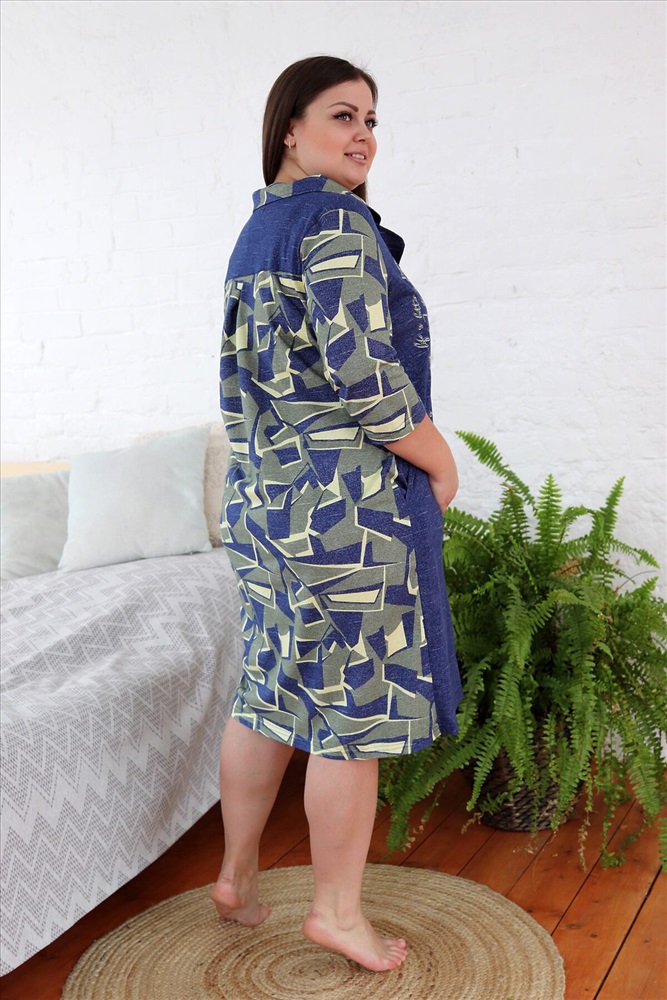 Страна производства: Россия Халат женский полуприлегающего силуэта. Воротник английского типа, рукав втачной 3/4. Застежка на петли - пуговицы. Воротник, спинка, рукава и обтачка нагрудного кармана из отделочной ткани. На полочках два внутренних кармана, на левой полочке нагрудный карман, на правой полочке принт.