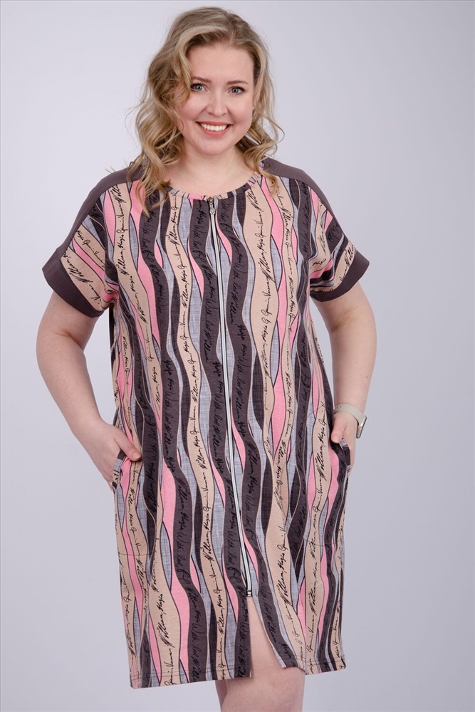Застежка: молния Женский халатик на молнии самая распространенная и универсальная одежда для домашнего отдыха и хозяйственных хлопот. После трудного рабочего дня, приходя домой, первым делом хочется переодеться. И данная модель это идеальный вариант среди представительниц прекрасной половины человечества. Модель выполнена из 100% хлопчатобумажной ткани.