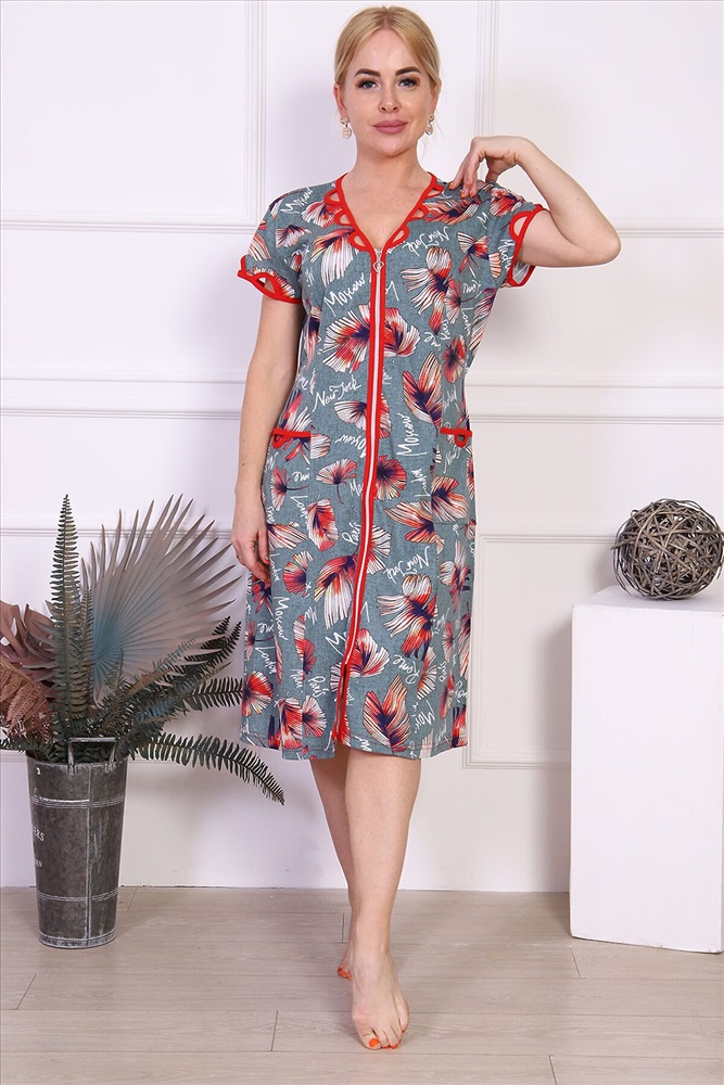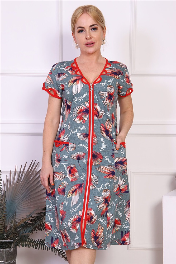 ID товара: 776539 Состав: 100% Хлопок Сезон: Демисезон Длина: Ниже колена Фасон: Полуприлегающий Рукав: Короткие Вид застежки: Молния Декоративные элементы: Принт Основная ткань: Хлопок | Кулирка Стиль: Повседневный Страна бренда: Россия Страна производства: Россия Модный халат из кулирки. Короткие рукава, цветная окантовка, необычный дизайн воротника и рукавов, застегивается на молнию, длина приблизительно до коленей, по бокам имеются карманы, несколько вариантов расцветки. Комментарии к товару