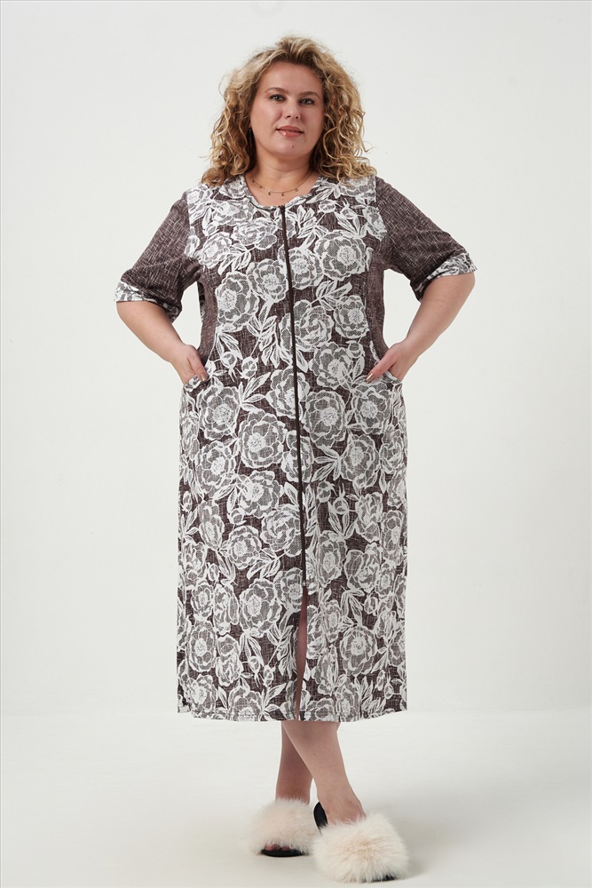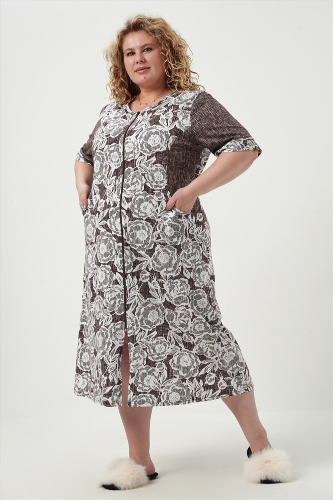 Состав: Хлопок 100%, хлопок Модель: Халат домашний на молнии 83601 Тип товара: халат Материал: кулирка | кулирка Бренд: Натали Суслова Длина: длинный Карман: боковые Назначение: для дома НДС: Без НДС Отделка: с карманами Рисунок: цветы | узоры Рукав: короткий рукав Сезонность: лето | осень | весна | зима Силуэт: полуприлегающий | свободный Стиль: домашний Воротник: без воротника Застежка: молния Домашний трикотажный халат на молнии - элемент женского гардероба, который должен быть на столько удобным, чтобы женщины смогли в нем себя чувствовать совершенно комфортно. Это удобная и практичная одежда яркого цвета. Состав из мягкого и приятного 100% хлопка, который обеспечивает максимальный комфорт в повседневной носке, а легкая трикотажная ткань высокого качества, стойкая к изнашиванию и не линяет при стирке, а также делает его очень приятным на ощупь. Вы сможете свободно заниматься своими делами, не опасаясь, что халат будет сковывать ваши движения. Благодаря особому вниманию к деталям, халат имеет удобную молнию, которая позволяет быстро и легко надевать, и снимать его. А также дополнен карманами для хранения мелочей под рукой. Необычное композиционное решение деталей, а также сочетание актуальной расцветки ткани создает яркий летний образ. Этот летний халат прекрасно подойдет для беременных женщин благодаря своему свободному крою, молнии и завязкам со спины, которые облегчают процесс одевания и раздевания. Кроме того, он может стать отличным выбором для поездки в отпуск на море, на дачу или для похода в бани, в сауну, в бассейн, в душ, на пляж, в ванную, для отдыха в отеле или санатории, а также на СПА или в роддом. Он отлично подчеркнет вашу индивидуальность и добавит шарма в ваш образ. Длинный халат будет прекрасным подарком вашей маме, бабушке или подруге на день рождения, новый год и 8 марта. В нашем ассортименте представлены халаты различных цветов и размеров, что позволяет каждому найти идеальный вариант, соответствующий его вкусу и стилю. Ткань изготовлена из высококачественного материала, имеет высокую воздухопроницаемость, хорошо впитывает влагу. Таблица размеров и веса