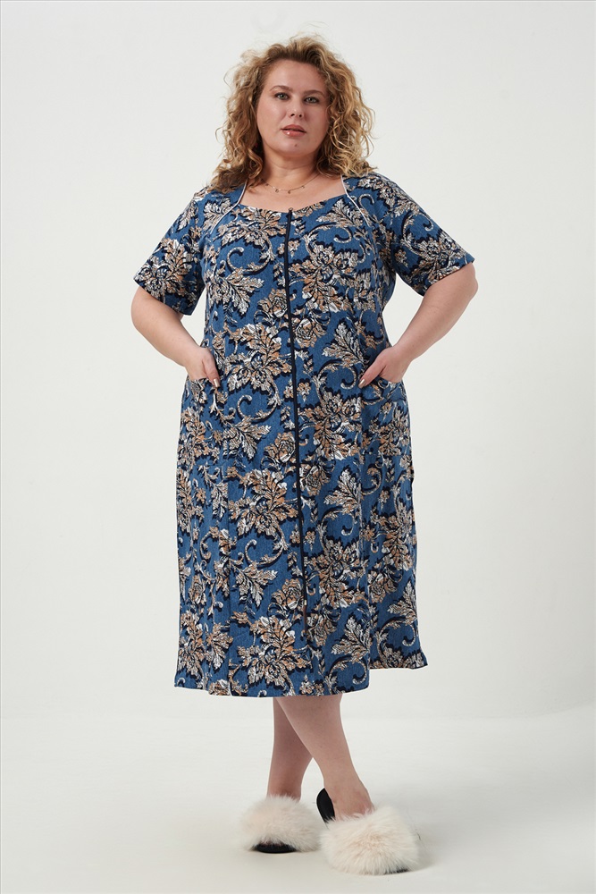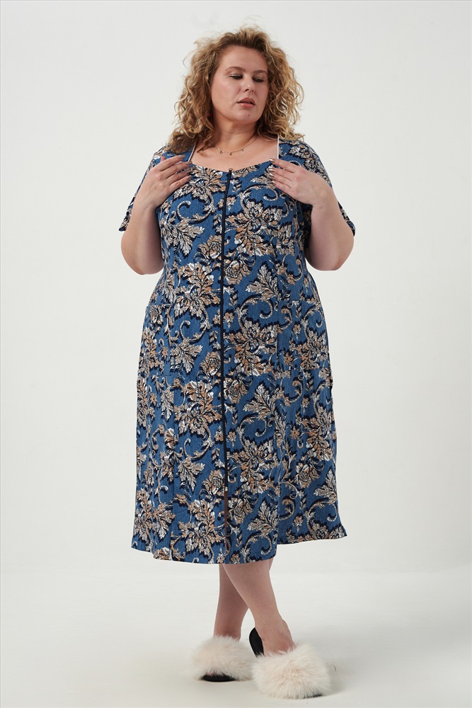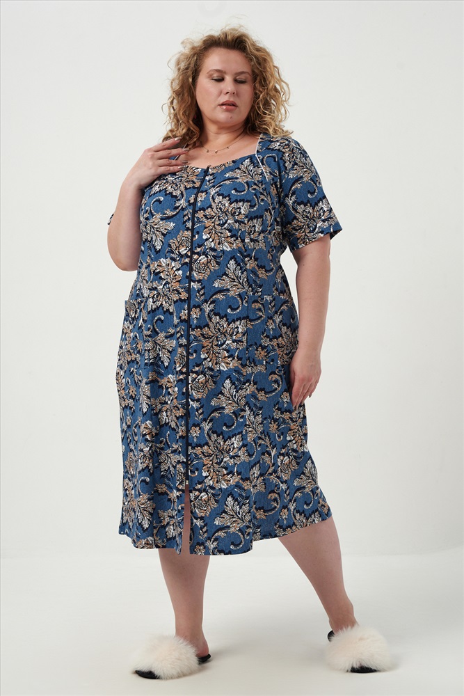 Состав: Хлопок 100%, хлопок Модель: Халат домашний на молнии 83603 Тип товара: халат Материал: кулирка | кулирка Бренд: Натали Суслова Карман: боковые Назначение: для дома НДС: Без НДС Отделка: с карманами Рисунок: цветы | узоры Рукав: короткий рукав Сезонность: лето | осень | весна | зима Силуэт: полуприлегающий | свободный Стиль: домашний Воротник: без воротника Застежка: молния Халат женский домашний на молнии не только комфортная и уютная одежда для домашнего отдыха, но и стильный элемент гардероба. Этот халат сочетает в себе элегантность, удобство и практичность, обеспечивая максимальный комфорт в повседневной жизни, а широкий размерный ряд станет настоящим открытием в вашем гардеробе. Состав из мягкого и приятного 100% хлопка, который обеспечивает максимальный комфорт в повседневной носке, а легкая трикотажная ткань высокого качества, стойкая к изнашиванию и не линяет при стирке, а также делает его очень приятным на ощупь. Вы сможете свободно заниматься своими делами, не опасаясь, что халат будет сковывать ваши движения. Благодаря особому вниманию к деталям, халат имеет удобную молнию, которая позволяет быстро и легко надевать, и снимать его, а также предотвращает случайное распахивание. Кроме того, халат дополнен карманами для хранения мелочей под рукой. Необычное композиционное решение деталей, а также сочетание актуальной расцветки ткани создает яркий летний образ. Этот летний халат прекрасно подойдет для беременных женщин благодаря своему свободному крою, молнии и завязкам со спины, которые облегчают процесс одевания и раздевания. Кроме того, он может стать отличным выбором для поездки в отпуск на море, на дачу или для похода в бани, в сауну, в бассейн, в душ, на пляж, в ванную, для отдыха в отеле или санатории, а также на СПА или в роддом. Он отлично подчеркнет вашу индивидуальность и добавит шарма в ваш образ. Длинный халат будет прекрасным подарком вашей маме, бабушке или подруге на день рождения, новый год и 8 марта. В нашем ассортименте представлены халаты различных цветов и размеров, что позволяет каждому найти идеальный вариант, соответствующий его вкусу и стилю. Ткань изготовлена из высококачественного материала, имеет высокую воздухопроницаемость, хорошо впитывает влагу. Не упустите возможность обновить свой гардероб и приобрести этот стильный и комфортный халат на молнии! Таблица размеров и веса
