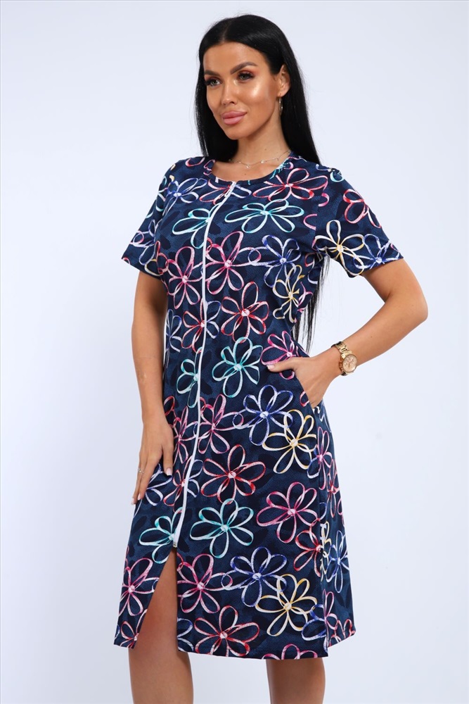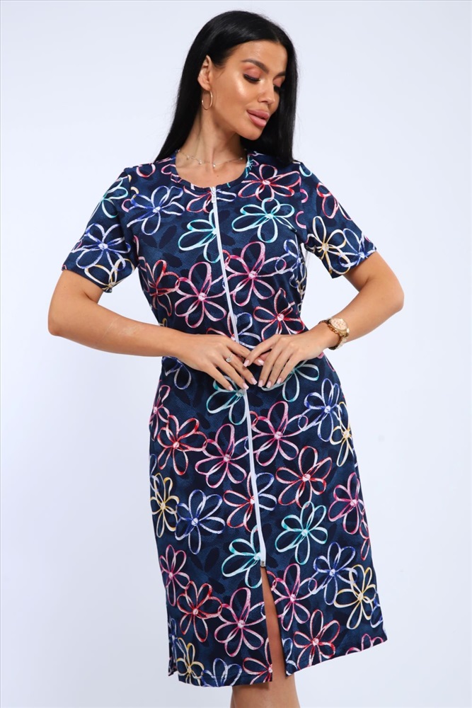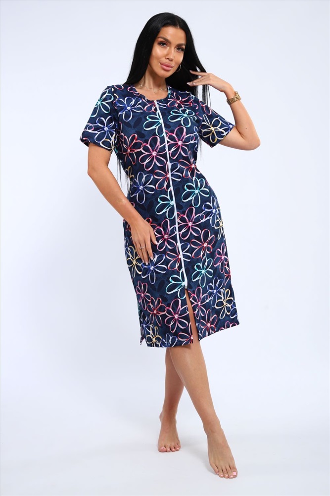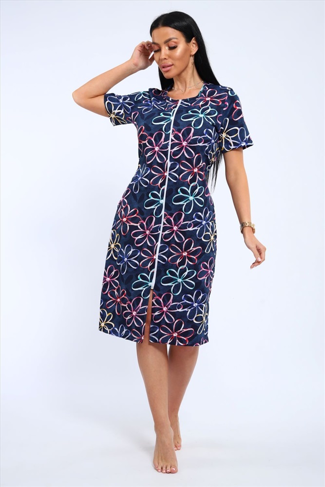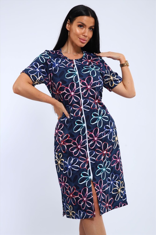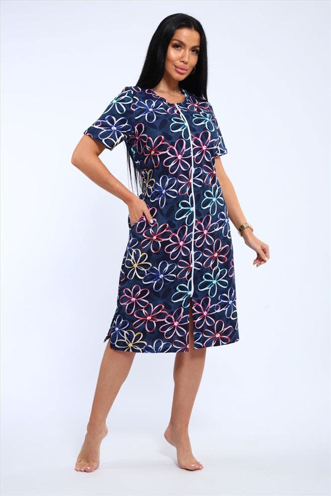 Состав: Хлопок 100 % Модель: ХАЛАТ домашний ПХДЖ Тип товара: халат Материал: кулирка | кулирка Бренд: Ашматекс Длина: средняя длина Карман: боковые | прорезные Назначение: для дома НДС: 5% Отделка: с карманами | со шнурком Рисунок: анималистичный | цветы Рукав: короткий рукав Сезонность: лето | осень | весна | зима Силуэт: свободный Стиль: домашний Воротник: без воротника Застежка: молния ХАЛАТ домашний - безупречное изделие, которое сочетает в себе комфорт, аккуратный внешний вид и простоту в уходе. Модель разработана с учётом повседневных потребностей современных женщин: удобно носить дома, на даче, в поездках или во время отдыха. Свободный крой и мягкий материал позволяют чувствовать себя комфортно в течение всего дня, не стесняя движений и не перегружая образ. Халат на молнии, 2 боковых кармана, круглый воротник, завязки на спине. Изделие выполнено из трикотажного полотна с натуральным составом такой материал приятен к телу, дышит и поддерживает оптимальный микроклимат. Фасон изделия универсален и уместен в любой обстановке: его можно надеть после душа, использовать как лёгкую одежду для дома или взять с собой в поездку. За счёт продуманного силуэта изделие хорошо садится на разные типы фигуры и подчёркивает естественную линию тела, при этом оставаясь удобным и свободным. ХАЛАТ домашний подойдёт как для личного использования, так и в качестве подарка на такие замечательные праздники, как 8 марта, Новый год или День рождения. Наша продукция станет символом заботы и внимания к вашим близким. Таблица размеров и веса