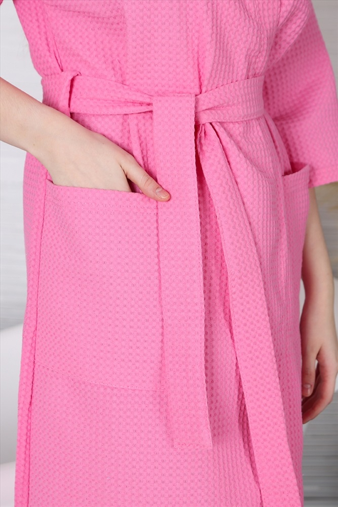 Застежка: на запах | пояс Вафельный халат-кимоно. Рукав 3/4. Карманы накладные. Воротник планка. Размерный ряд с 48/50 по 60/62. Плотность вафельного полотна 242 гр. Доступна возможность розничного приобретения. При первой стирке изделие дает усадку, это нужно учесть при выборе размера! Рекомендация по уходу и эксплуатации за изделием - бережная ручная стирка при температуре не более 30 С, без отжима. Для безупречного разглаживания складок и заломов изделие должно быть влажным.