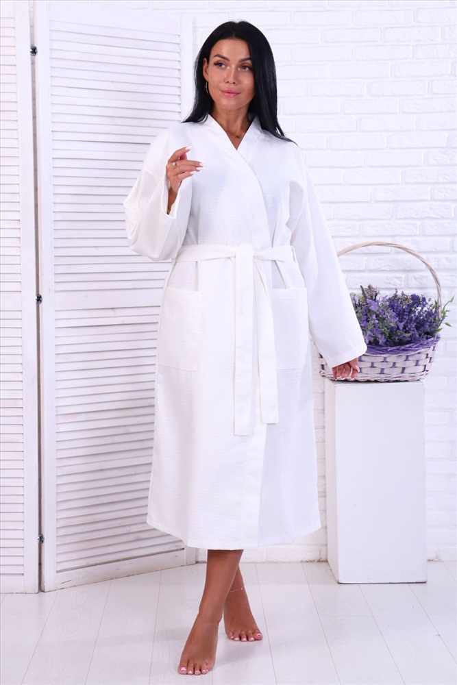 Состав: хлопок 100% Модель: Халат отельный дл.кимоно дл.рукав ВДК-ДР-225-7*7 Тип товара: халат Материал: вафельное полотно | вафельное полотно Бренд: Ашматекс Длина: длинный Карман: накладные Назначение: для дома НДС: 5% Отделка: с карманами | с поясом Рисунок: однотонные Рукав: длинный рукав Сезонность: лето | осень | весна | зима Силуэт: прямой Стиль: домашний Воротник: без воротника Застежка: на запах | пояс Вафельный халат- кимоно отельный. Рукав длинный. Карманы накладные. Воротник планка. Плотность вафельного полотна 225 гр. При первой стирке изделие дает усадку, это нужно учесть при выборе размера! Рекомендация по уходу и эксплуатации за изделием - стирка при температуре 60 С. Возможна барабанная сушка при низкой температуре. Таблица размеров и веса