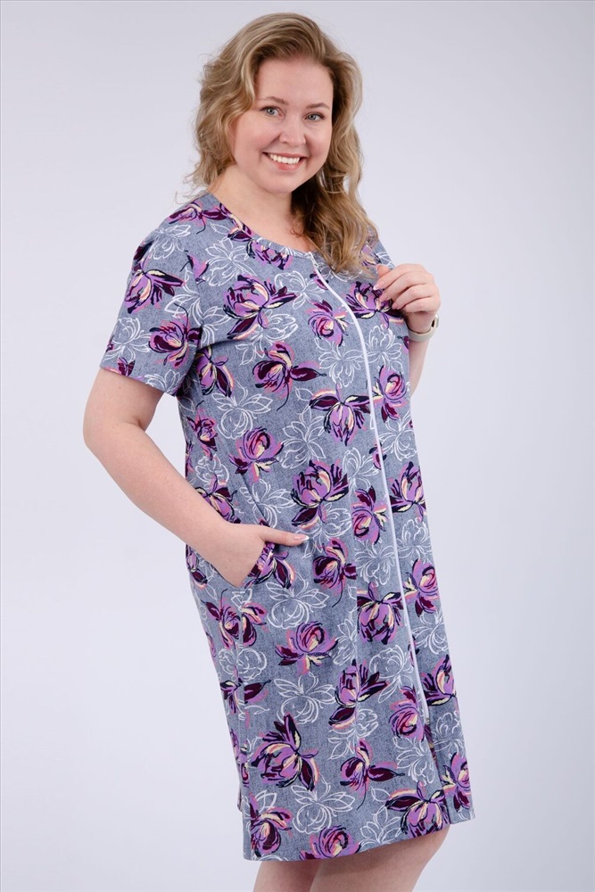 Состав: 100% хлопок Модель: Халат Рената Тип товара: халат Материал: кулирка | кулирка Бренд: Malina Назначение: для дома НДС: 5% Рисунок: цветы Рукав: короткий рукав Сезонность: лето | осень | весна | зима Силуэт: прямой | свободный Стиль: домашний Воротник: без воротника Застежка: молния Женский халатик на молнии самая распространенная и универсальная одежда для домашнего отдыха и хозяйственных хлопот. После трудного рабочего дня, приходя домой, первым делом хочется переодеться. И данная модель это идеальный вариант среди представительниц прекрасной половины человечества. Модель выполнена из 100% хлопчатобумажной ткани. Таблица размеров и веса