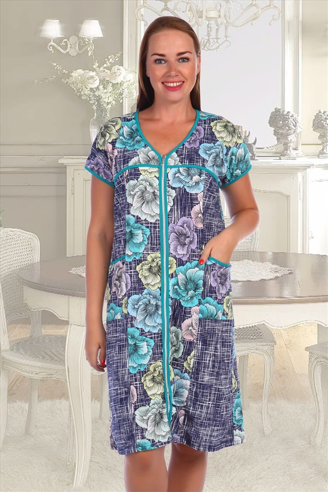 Страна производства: Россия Комбинированный халат полуприлегающего силуэта с двумя накладными карманами в рельефных швах.
