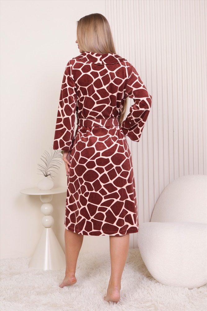 Застежка: на запах | пояс Халат женский на запах с поясом. Халат выполнен из нежного мягкого велюра, рукава и шаль воротника обработаны краевой машиной. Девушка модель на фото 170 см рост.