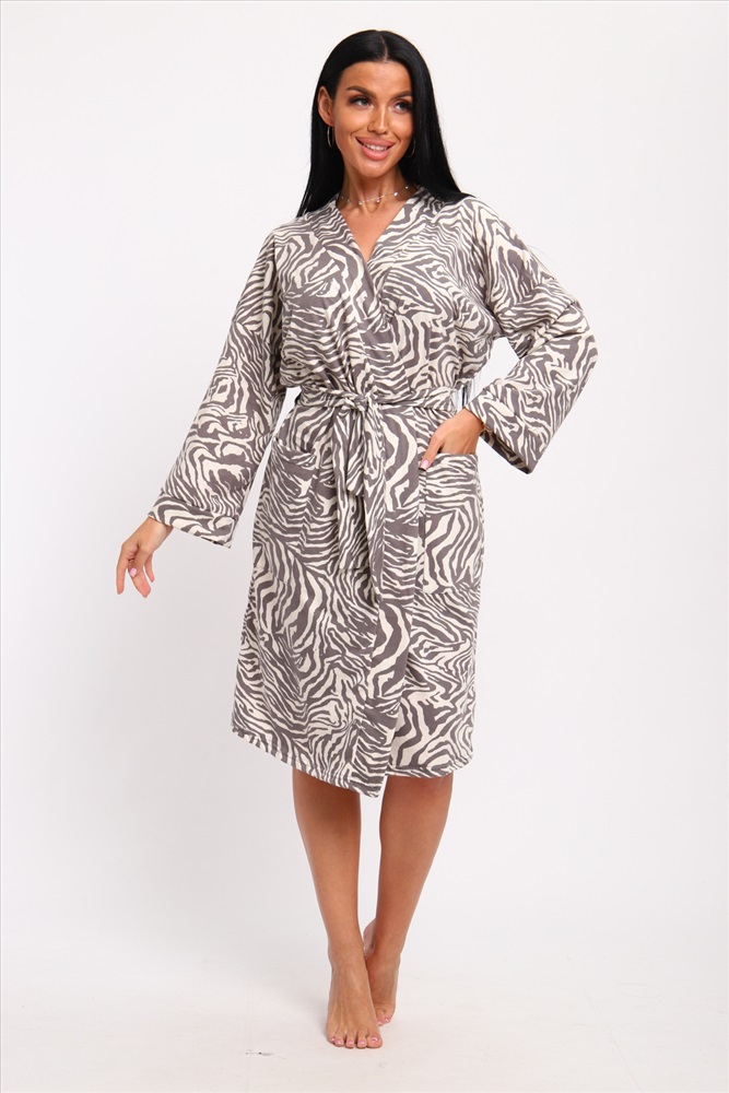 Состав: 100% хлопок Модель: Халат женский 271 Тип товара: халат Материал: кулирка | кулирка Бренд: NIRMIN Карман: накладные Назначение: для дома НДС: 5% Отделка: с карманами | с поясом Рисунок: анималистичный Рукав: длинный рукав Сезонность: лето | осень | весна | зима Силуэт: свободный Стиль: домашний Воротник: без воротника Застежка: на запах | пояс Халат женский запашной свободного кроя, с карманами и поясом. Длинный рукав на спущенном плече. Таблица размеров и веса