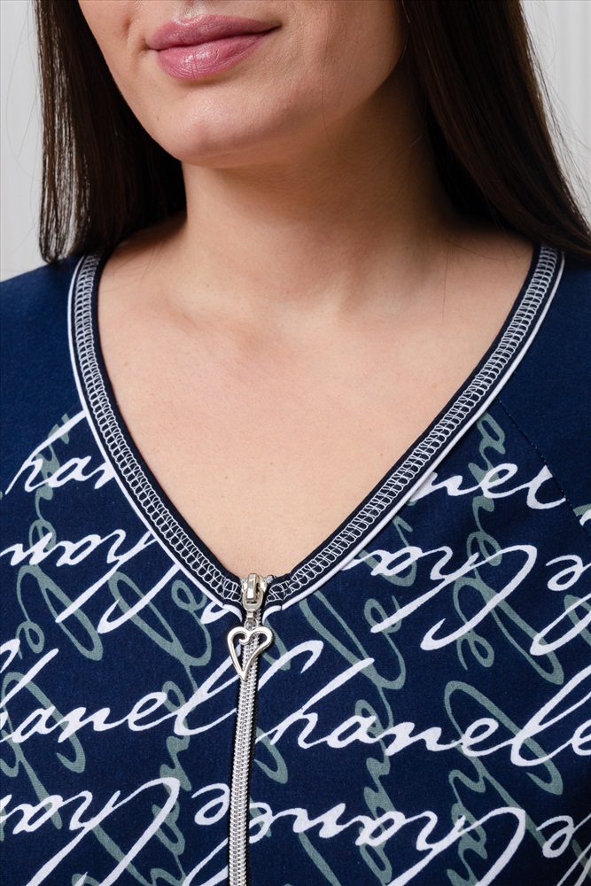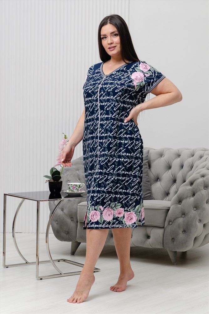 Состав: хлопок 100% Модель: Халат женский 8431 Тип товара: халат Материал: кулирка | кулирка Бренд: Натали Суслова Карман: боковые Назначение: для дома НДС: 22% Отделка: с карманами Рисунок: надпись | цветы Рукав: короткий рукав Сезонность: лето | осень | весна | зима Силуэт: полуприлегающий Стиль: домашний Воротник: без воротника Застежка: молния Халат с застежкой на молнию, полуприлегающего силуэта, длиной ниже колена, с V-образной горловиной. Рукав спущенный, короткий. В верхней части полочки расположены кокетки. Спинка с кокеткой. С разрезами в нижней части боковых швов. Горловина, пройма обработаны бейкой из отделочного полотна с отделочным кантом. Таблица размеров и веса