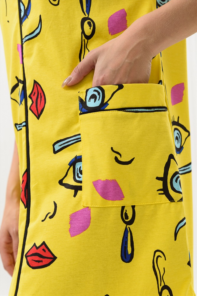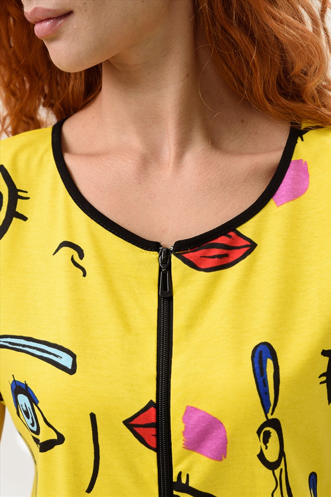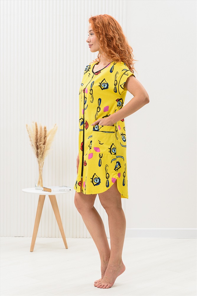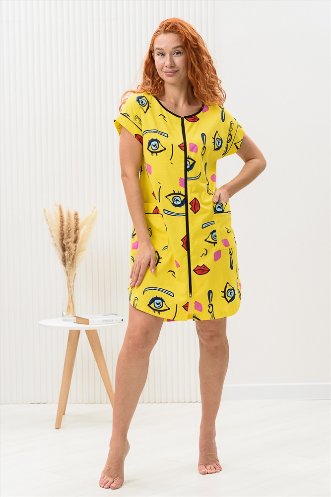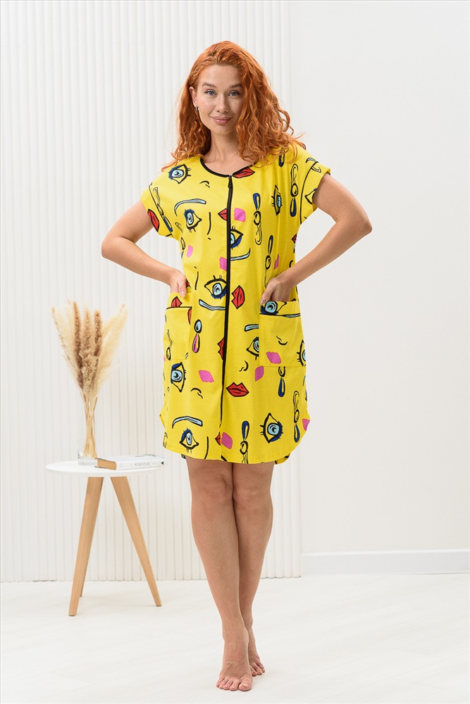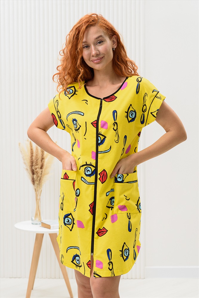 Состав: 100% х/б Модель: Халат женский 8442 Тип товара: халат Материал: кулирка | кулирка Бренд: Натали Суслова Длина: средняя длина Карман: накладные Назначение: для дачи | для дома Отделка: с карманами | с манжетами Рейтинг: Рейтинг 4 и выше Рисунок: разное Рукав: короткий рукав Сезонность: лето | осень | весна | зима Силуэт: прямой Стиль: домашний | молодежный Воротник: без воротника Застежка: молния Халат на молнии, прямого силуэта, длиной выше колена, с фигурной линией низа, с удлиненной спинкой, с округлой горловиной, с накладными карманами. Рукав цельнокроеный, короткий, с манжетом. Горловина обработана бейкой из отделочного полотна. Таблица размеров и веса