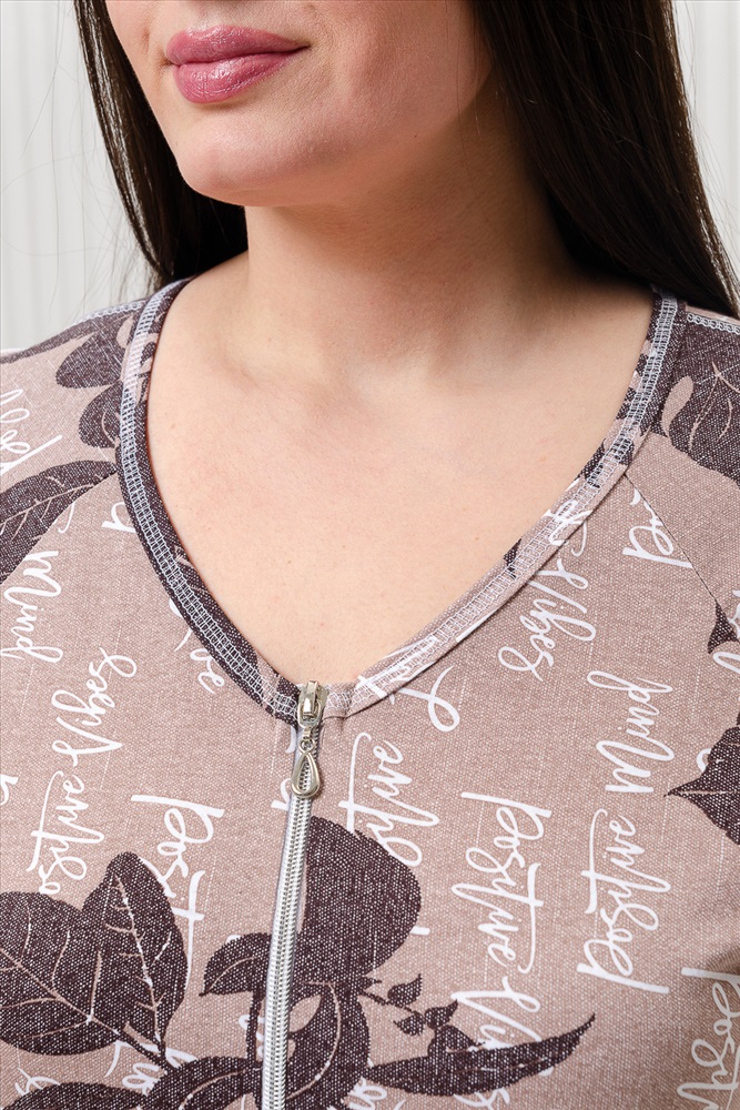Состав: 100% х/б Модель: Халат женский 8449 Тип товара: халат Материал: кулирка | кулирка Бренд: Натали Суслова Длина: средняя длина Карман: накладные Назначение: для дачи | для дома Отделка: с карманами Рисунок: надпись | цветы Рукав: короткий рукав Сезонность: лето | осень | весна | зима Силуэт: полуприлегающий Стиль: домашний Воротник: без воротника Застежка: молния Халат с застежкой на молнию, полуприлегающего силуэта, длиной ниже колена, с V-образной горловиной, с накладными боковыми карманами. Рукав спущенный, короткий. В верхней части полочки расположены кокетки. Спинка с кокеткой. В нижней части боковых швов обработаны разрезы . Горловина, проймы и верх карманов обработаны бейкой из основного полотна с декоративной строчкой. Таблица размеров и веса