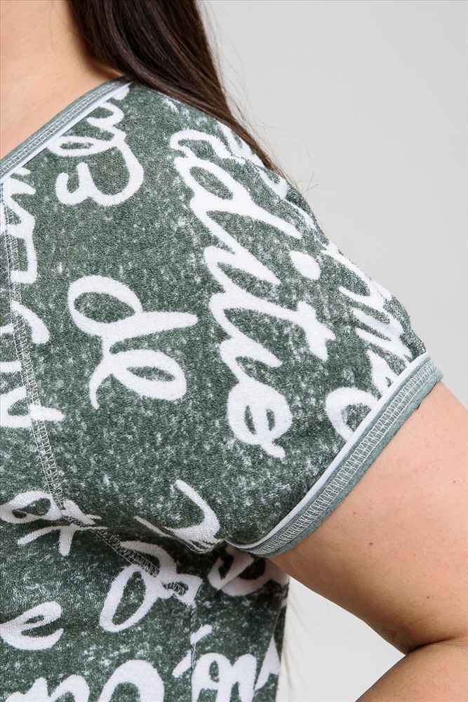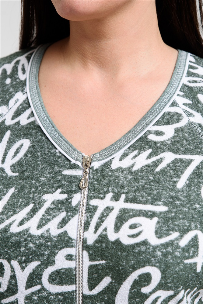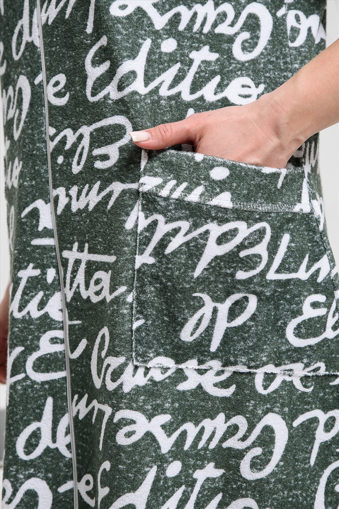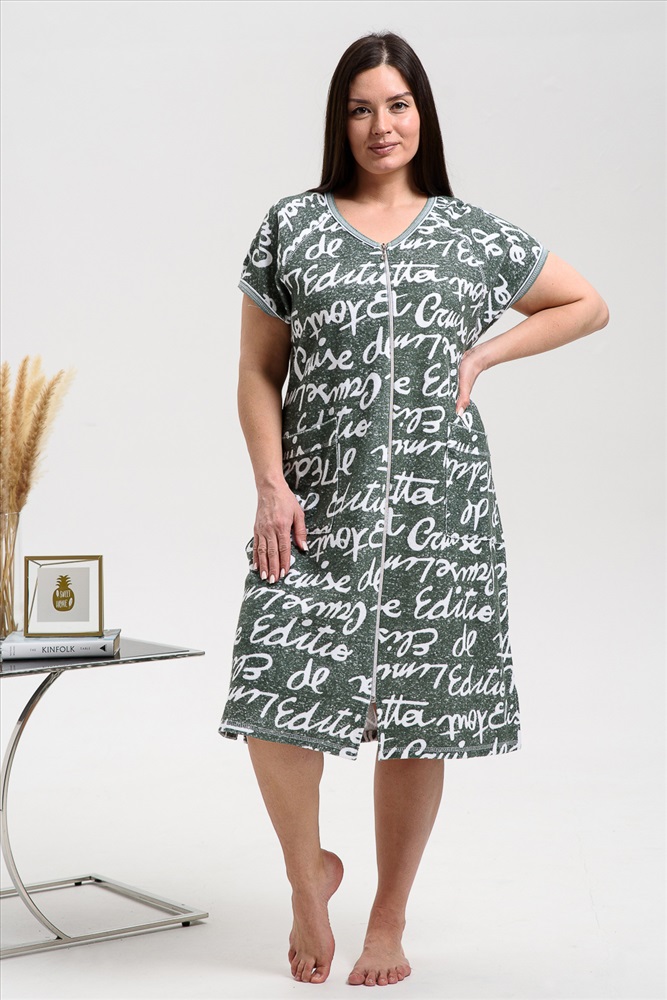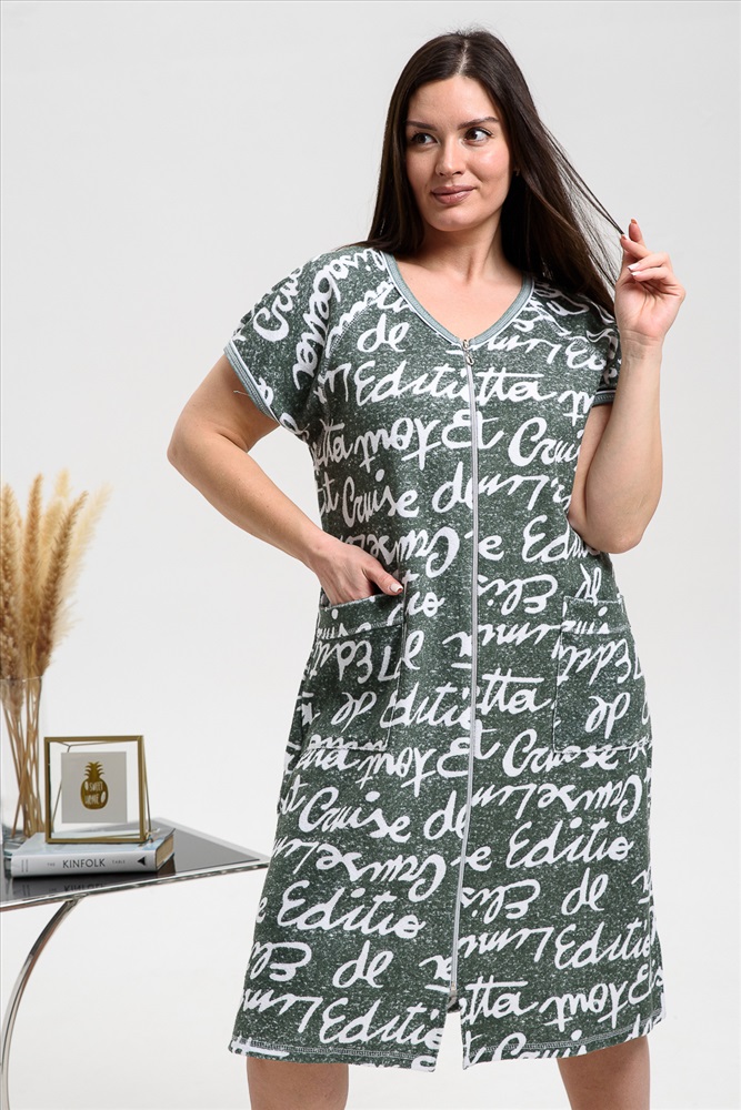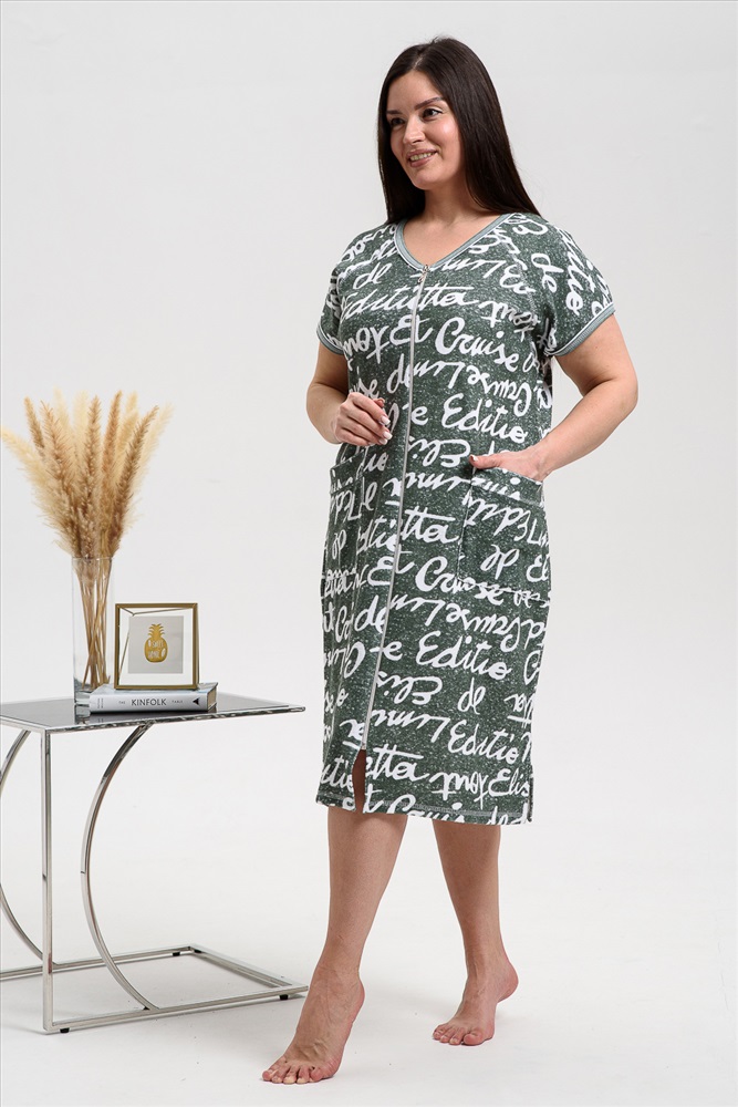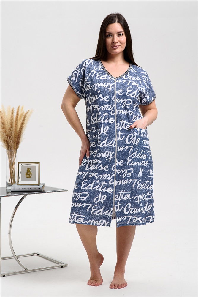 Состав: 100% х/б Модель: Халат женский 8472 Тип товара: халат Материал: махра | махра Бренд: Натали Суслова Карман: накладные Назначение: для дома Отделка: с карманами Рисунок: надпись Рукав: короткий рукав Сезонность: лето | осень | весна | зима Силуэт: свободный Стиль: домашний Воротник: без воротника Застежка: молния Халат с застежкой на молнию, полуприлегающего силуэта, длиной ниже колена, с V-образной горловиной, с накладными боковыми карманами. Рукав спущенный, короткий. В верхней части полочки расположены кокетки. Спинка с кокеткой. В нижней части боковых швов обработаны разрезы. Горловина, проймы и верх карманов обработаны бейкой из отделочного полотна с белым кантом и декоративной строчкой. Таблица размеров и веса