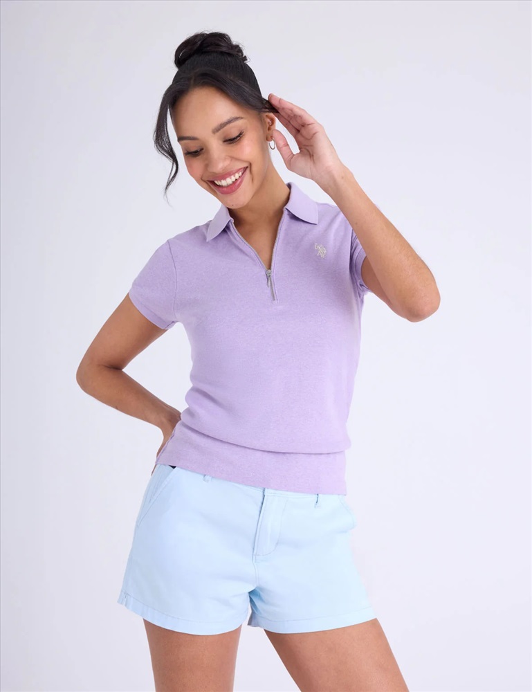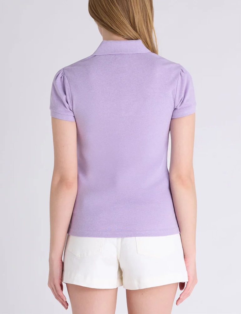 HALF ZIP PUFF SLEEVE HEATHER POLO SHIRT