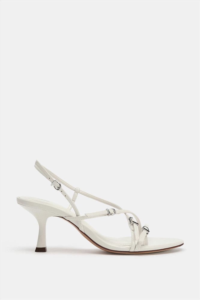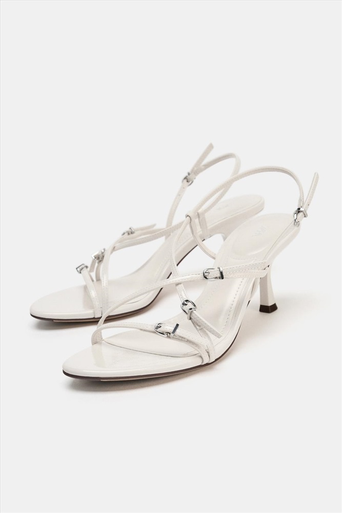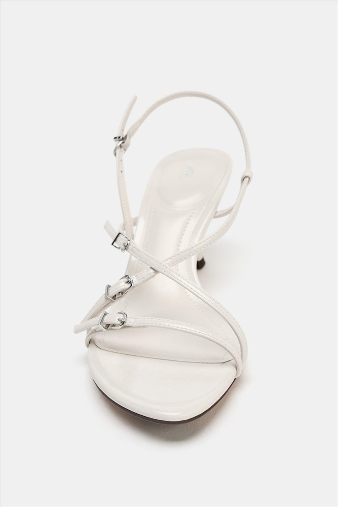 Heeled sandal shoes. Crossover straps with metallic buckle detail. Round toe. COMPOSITION, CARE & ORIGIN COMPOSITION UPPER 100% polyurethane LINING 100% polyurethane SOLE 100% polyurethane thermoplastic INSOLE 100% polyurethane