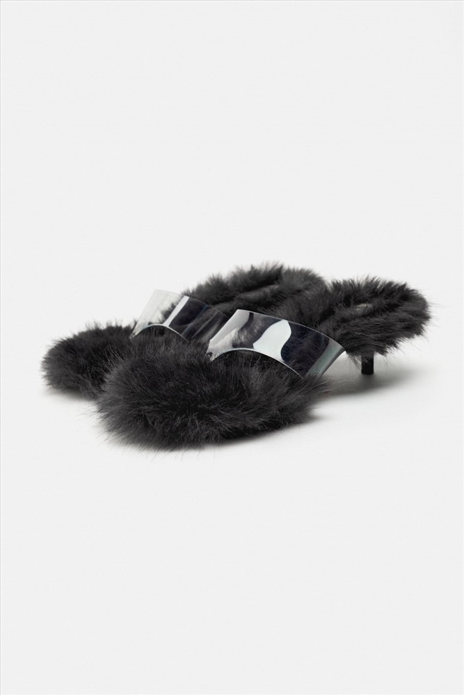 HEELED SANDALS WITH FAUX FUR DETAIL