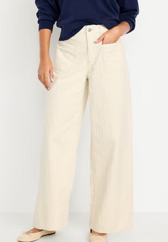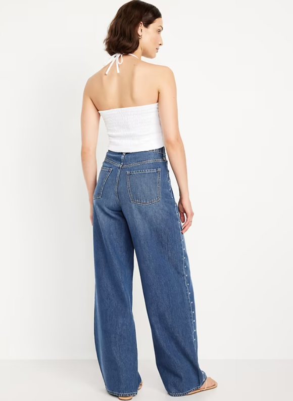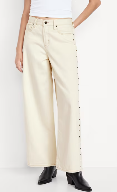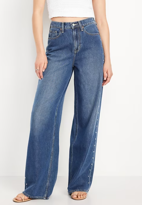 High-Waisted Baggy Wide-Leg Studded Jeans