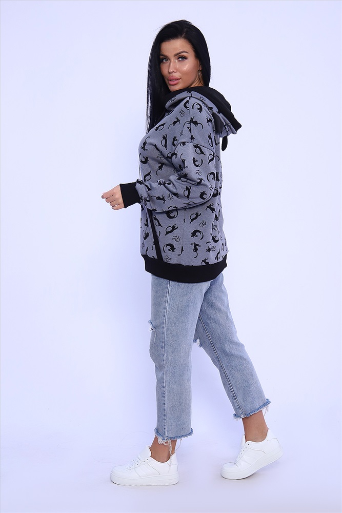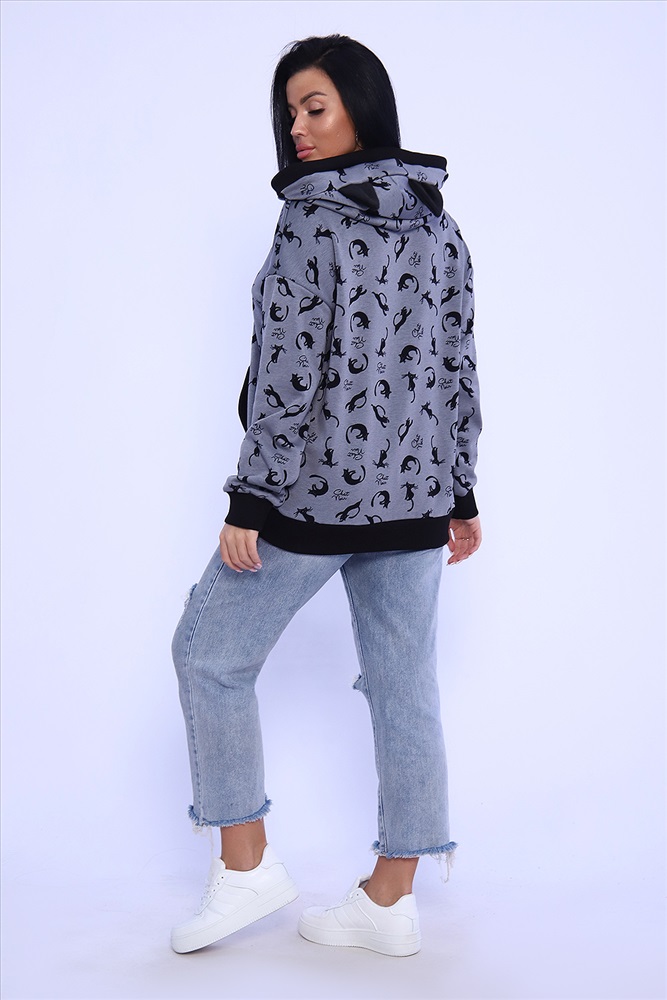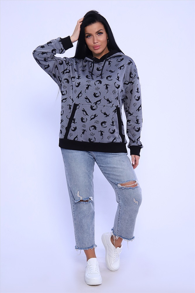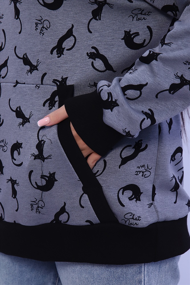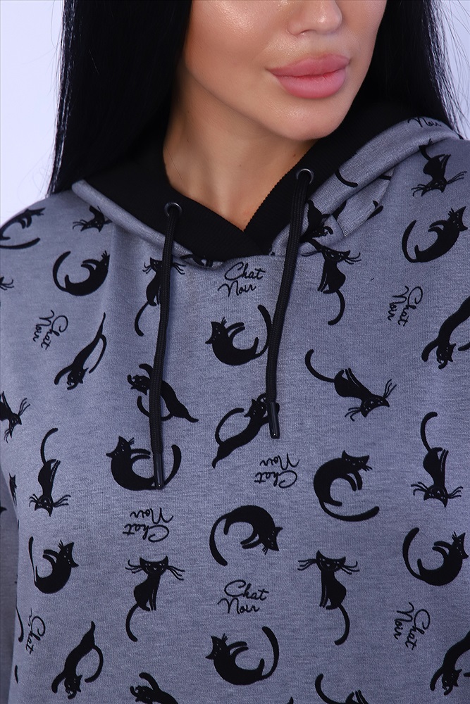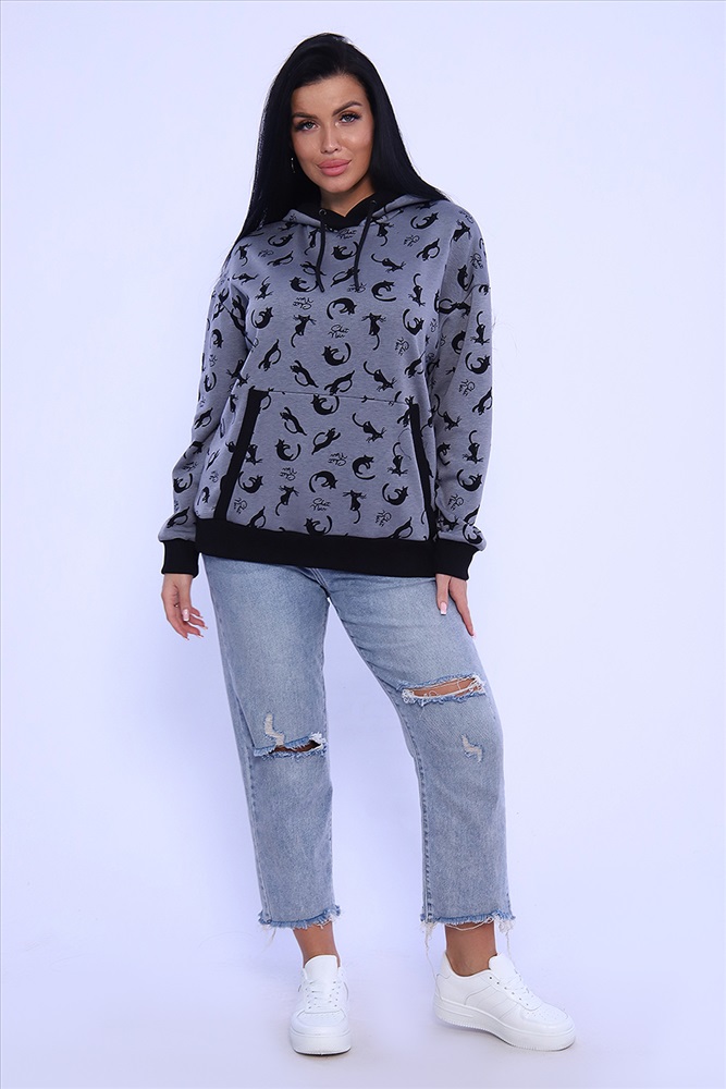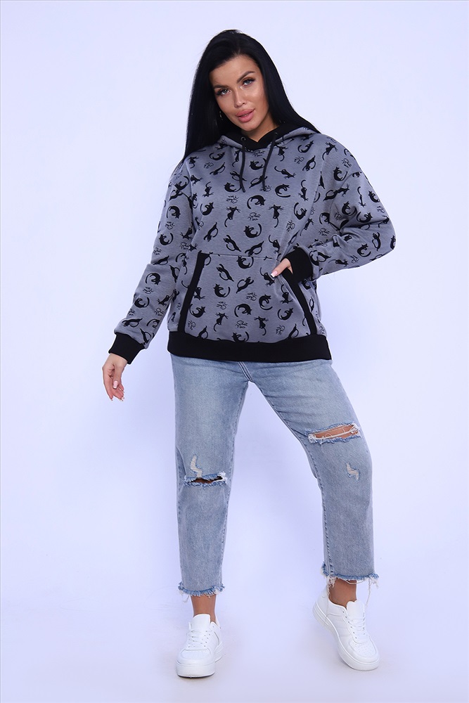 Воротник: с капюшоном Молодёжная толстовка-худи из теплого трикотажа на меху. Толстовка в свободном стиле-оверсайз с удобным карманом-кенгуру, спущенная пройма, длинный рукав, капюшон с игривыми ушками. Низ джемпера, манжеты, капюшон и вход в карман-кенгуру обработаны эластичной кашкорсе. Стильная, комфортная толстовка не стесняет движения, отличный вариант для занятия спортом, а так же для прогулок в холодное время года.