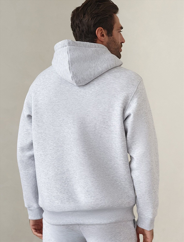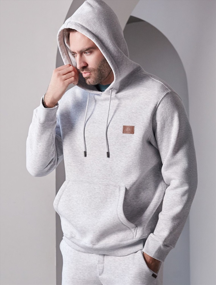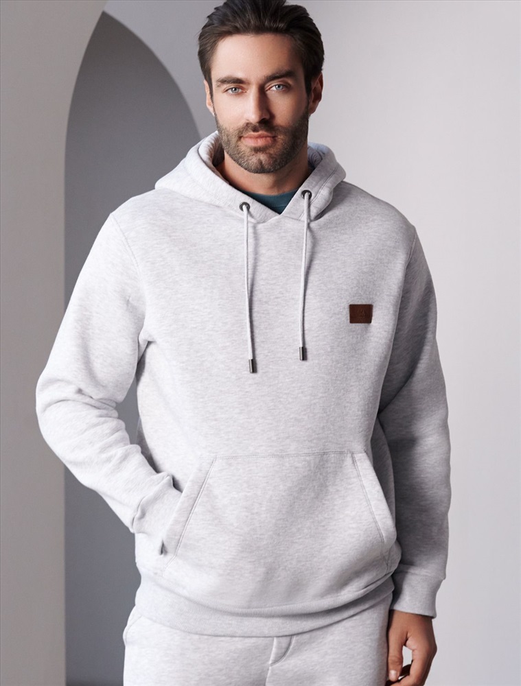 Параметры модели на первом фото: Рост 190, бюст 108, талия 87, бедра 104 Худи выполнено из премиального эластичного футера трехнитки с теплым начесом. Уютная и классическая модель с капюшоном и карманом-кенгуру дополнена нашивкой с логотипом бренда из эко-кожи. Свободный крой не сковывает движений. Высококачественная фурнитура цвета темное серебро. Изделие сочетается в костюме с брюками U44.006