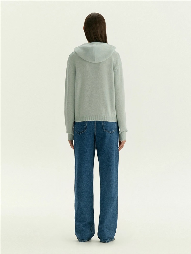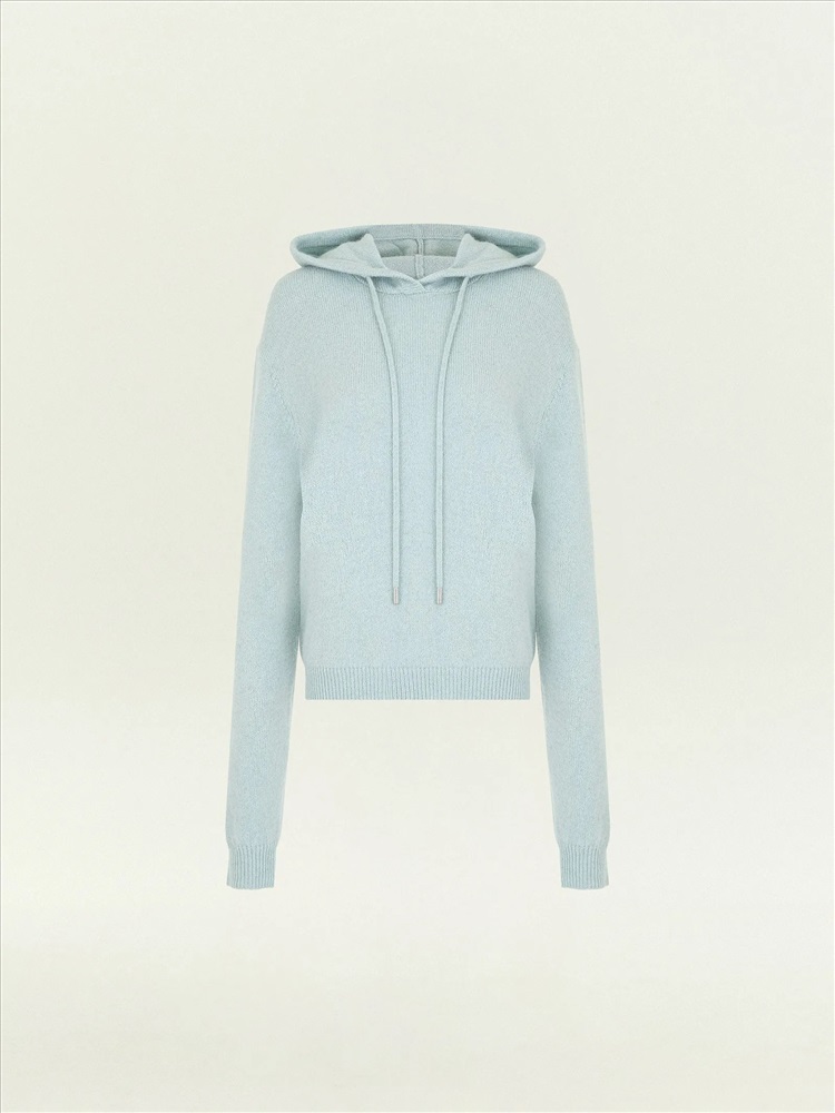 Худи в светлом серо-голубом оттенке для уютных образов на каждый день. Тонкий, но тёплый материал более чем на 2\3 состоит из натуральной шерсти. Не колется, приятно ощущается на теле. Капюшон дополнен длинными шнурками.