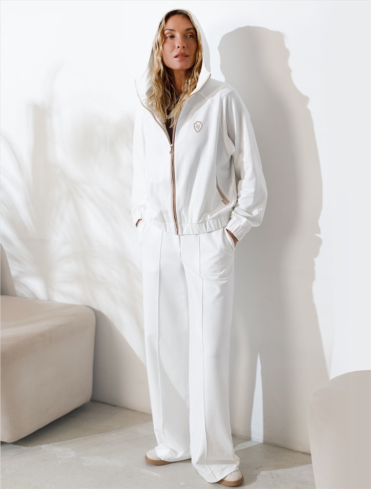 Худи белого цвета на молнии выполнено из премиального футера двухнитки плотностью 240 Г/м2. Натуральный состав обеспечивает хорошую воздухопроницаемость, мягкость и приятные тактильные ощущения, Эластичный материал зип-худи позволяет свободно двигаться без лишнего стеснения, а также отлично сохраняет форму даже после длительного ношения. Манжеты на рукавах и резинка по низу обеспечивают надежную посадку, сохраняя тепло в прохладную погоду. Зипка на молнии отличается универсальной длиной, которая идеально подходит для повседневного и спортивного образа. Капюшон добавляет уюта, а прорезные карманы по бокам добавляют функциональности, сохраняя при этом стильный внешний вид. На груди расположена аккуратная нашивка в виде логотипа бренда. Представленная размерная линейка позволяет подобрать оптимальный вариант для любой фигуры и размера, на маленький или плюс сайз, обеспечивая идеальную посадку без компромиссов по стилю. Эта толстовка из футера станет отличным дополнением к базовому гардеробу, сочетая практичность с элегантностью.