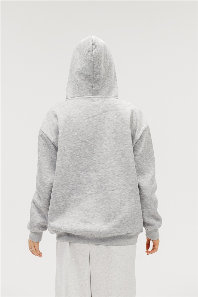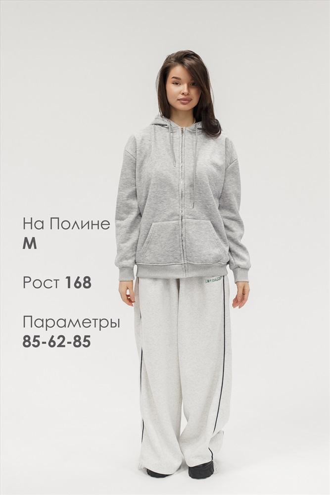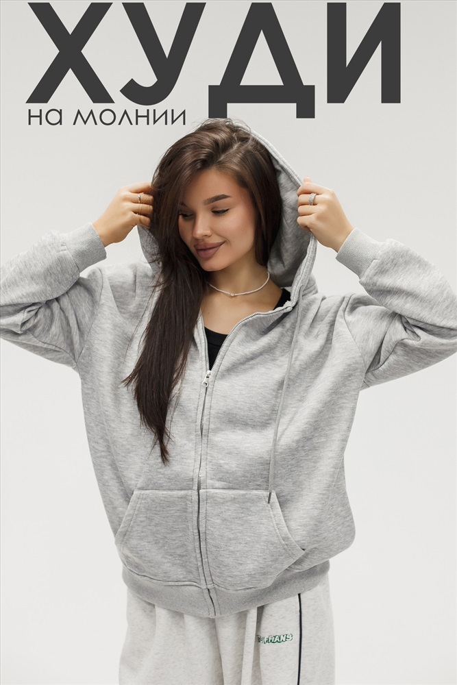 Толстовка на молнии по всей длине позволяет варьировать образ от полностью застёгнутого до свободно расстёгнутого. Вместительные карманы удобно держат руки и необходимые мелочи. Капюшон со шнурком защищает от ветра и подчёркивает спортивно‑городской стиль. Рукава на эластичных манжетах сохраняют тепло и придают аккуратную посадку, при этом свободный силуэт позволяет сочетать худи с джинсами, леггинсами, спортивными штанами или использовать как тёплую базу под короткую куртку или жилет для многослойности.