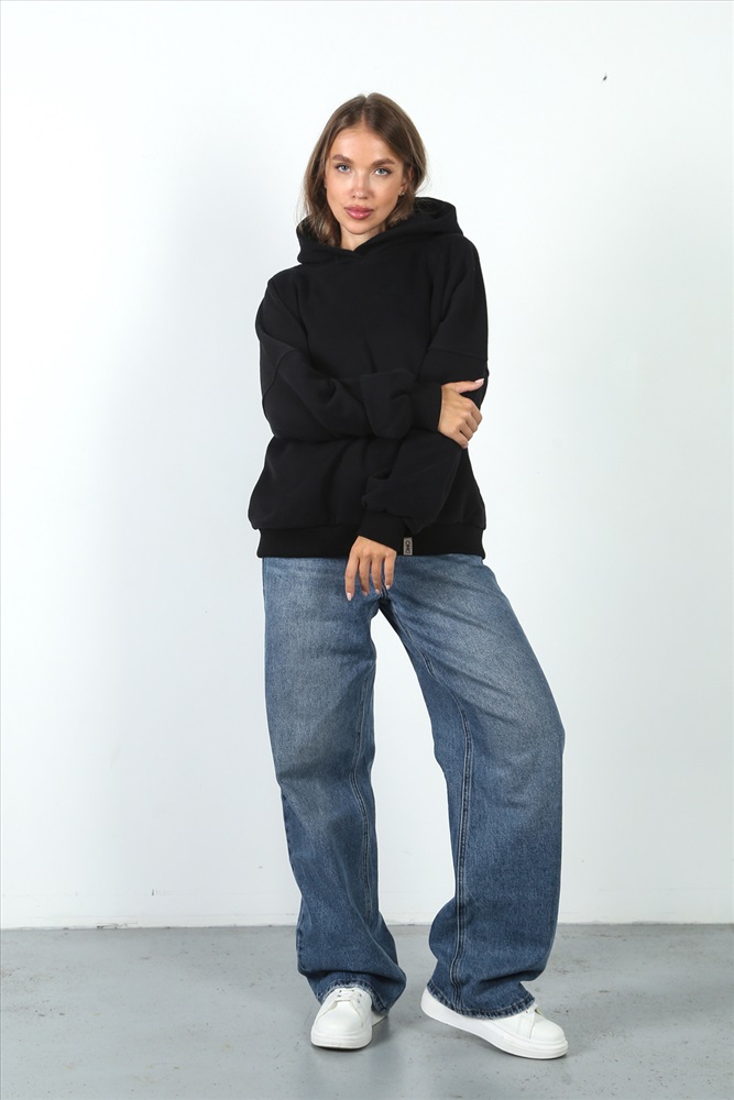 Застежка: без застежки Женское худи с капюшоном и начесом станет идеальным выбором для осеннего и зимнего базового гардероба. Модель оверсайз со спущенными плечами позволяет создать комфортный и стильный образ, подчеркивая свободу движений. Свободная толстовка с длинным рукавом и карманом кенгуру добавит уюта в повседневную жизнь любителей спорта и активного отдыха. Кофта из футера приятно удивит мягкостью материала. Большие размеры делают его удобным вариантом для беременных женщин, которым важно сохранение тепла и комфорта. Благодаря оверсайз крою, худи не сковывает ваши движения. Базовое худи обеспечит дополнительную защиту от холода. Манжеты на рукавах предотвращают проникновение холодного воздуха, что делает его особенно теплым. Оно подходит подросткам для школы или для прогулок на свежем воздухе в прохладные дни. Девушки оценят сочетание практичности и модного дизайна. Толстовка женская спортивная с капюшоном станет отличным элементом одежды как для тренировок, так и для повседневного ношения. Свободная посадка позволяет легко сочетать его с разными стилями одежды, сохраняя при этом ощущение уюта. Позвольте себе быть стильной и комфортной одновременно - выберите наше базовое худи для повседневных образов!