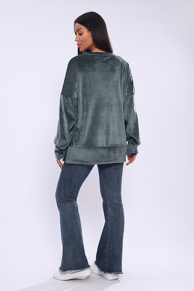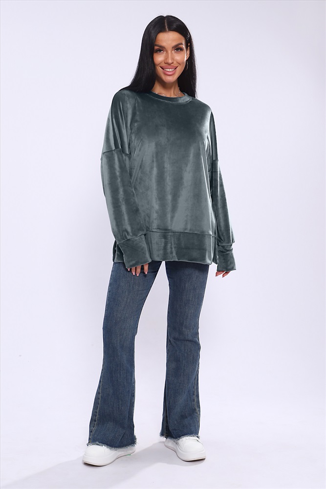 Застежка: без застежки Женское худи свободного кроя со спущенным рукавом и разрезами по бокам. Модель выполнена из премиального велюра.