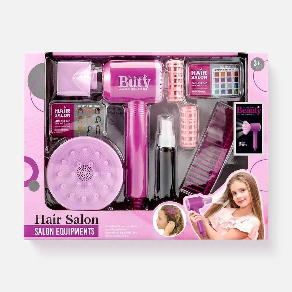 Это увлекательный набор для маленьких модниц, который включает предметы для создания и ухода за красотой. В набор входят различные игрушечные аксессуары, которые помогут ребенку почувствовать себя настоящим стилистом-парикмахером. Все элементы выполнены в ярких и привлекательных цветах, что делает игру еще более интересной и захватывающей. Этот набор не только развивает творческие способности и воображение, но и способствует развитию мелкой моторики и социальных навыков. В наборе есть игрушечный фен, выдувающий воздух, сменные насадки к нему и бигуди. Фен работает от двух батареек AA (в набор не входит).