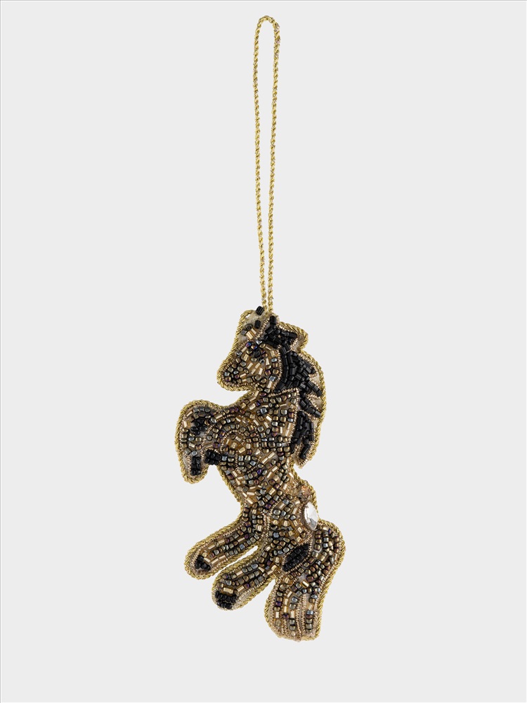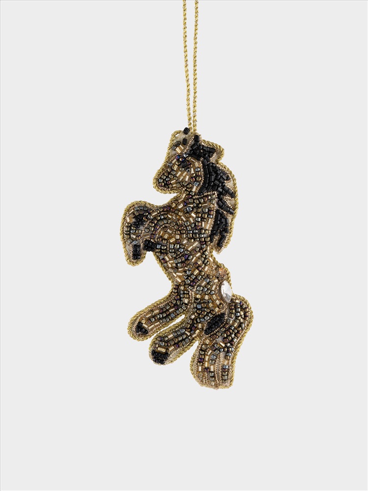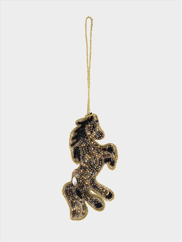 Игрушка елочная, 10 см, бисер/полифилл, черно-золотистая, Конь, New year