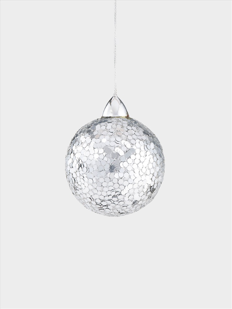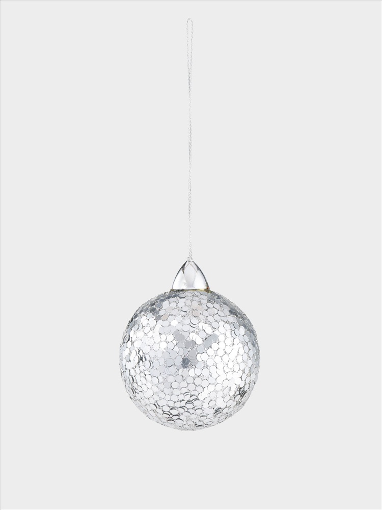 Игрушка елочная, 6 см, пластик/пайетки, серебристая, Шар, New year