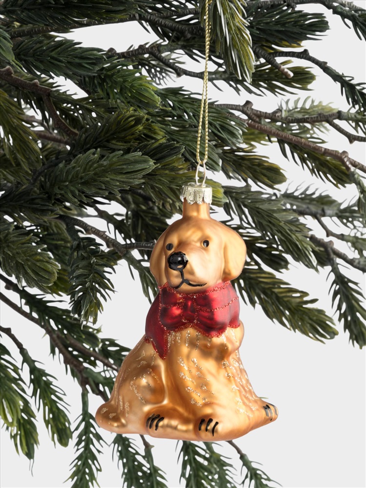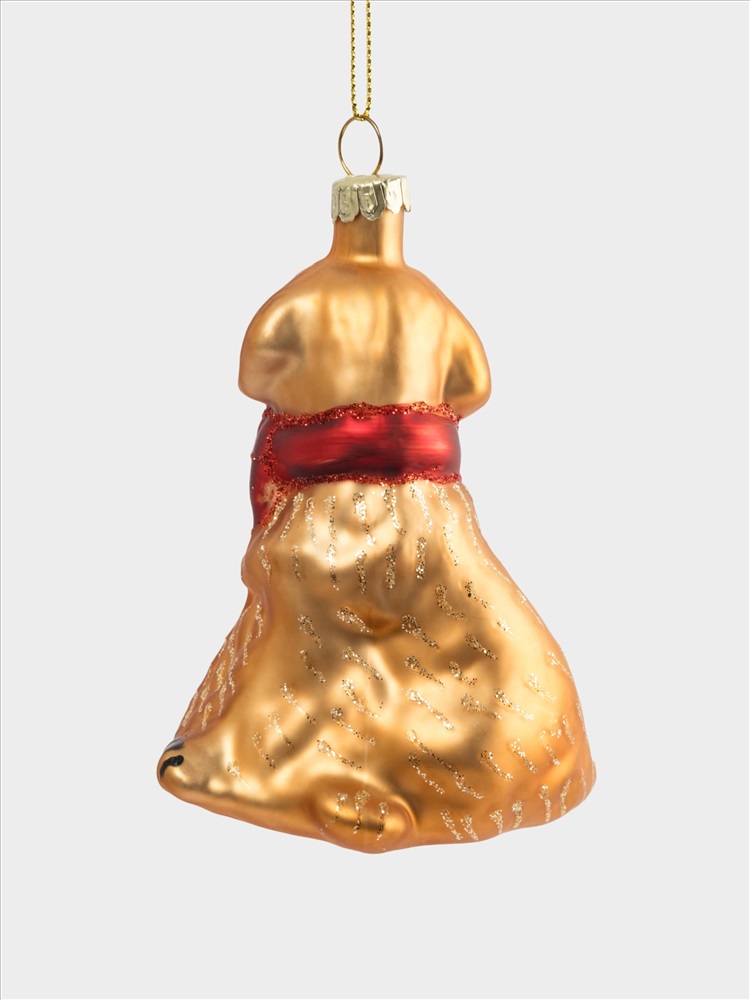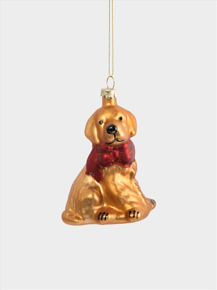 Игрушка елочная, 7х9 см, стекло, золотистая, Собака с бантом, New year