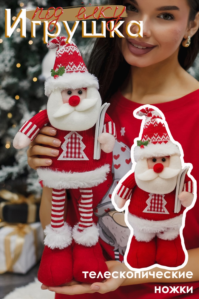 Модель: Игрушка новогодняя с выдвижными ногами Дед с лыжами красный