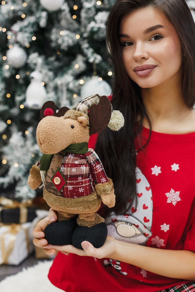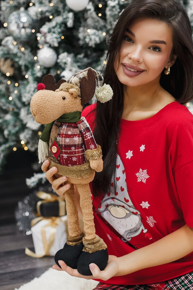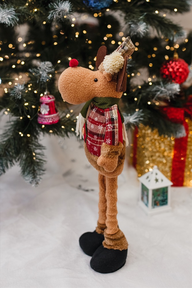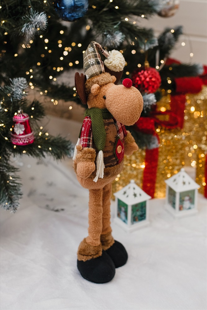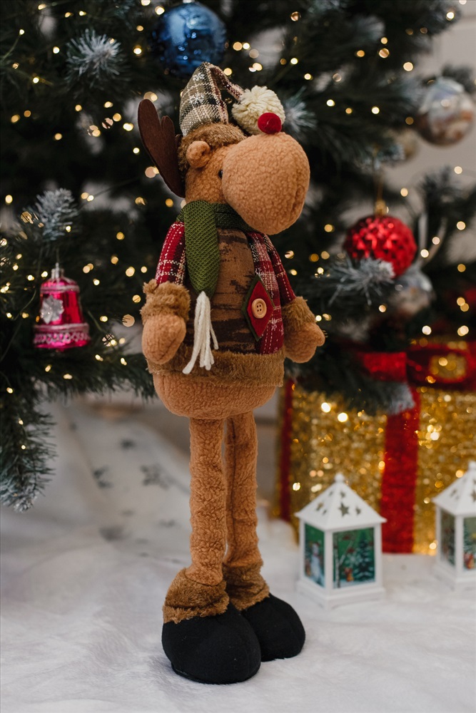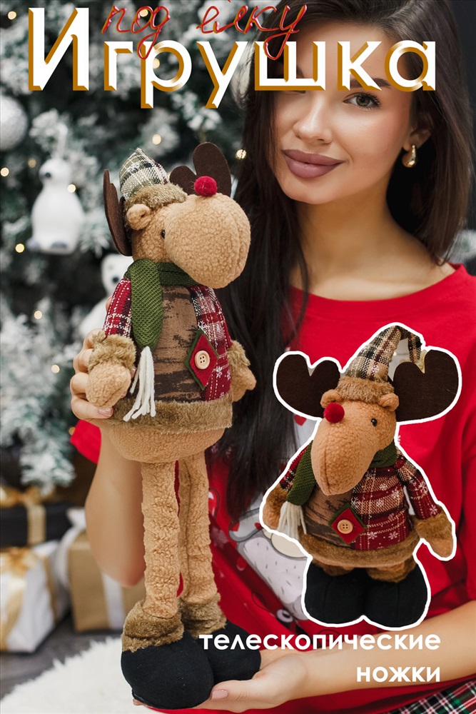 Модель: Игрушка новогодняя с выдвижными ногами Олень черные ботинки коричневый