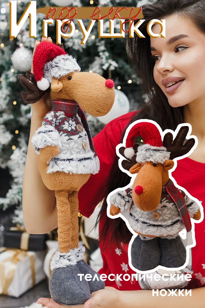 Модель: Игрушка новогодняя с выдвижными ногами Олень серые ботики серый