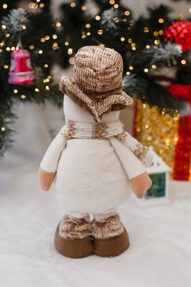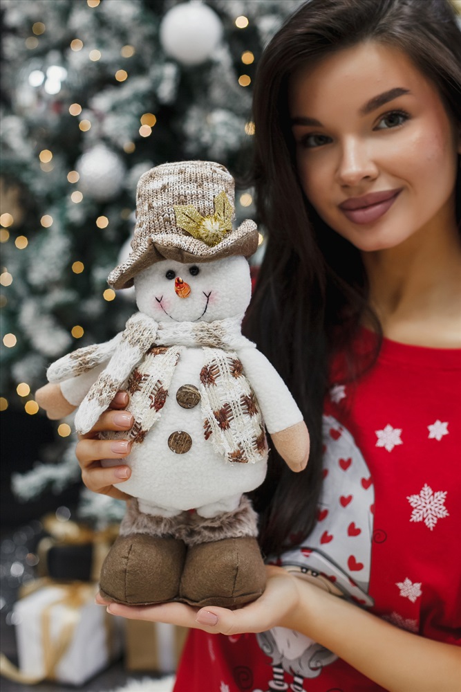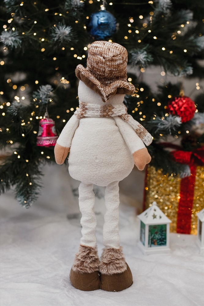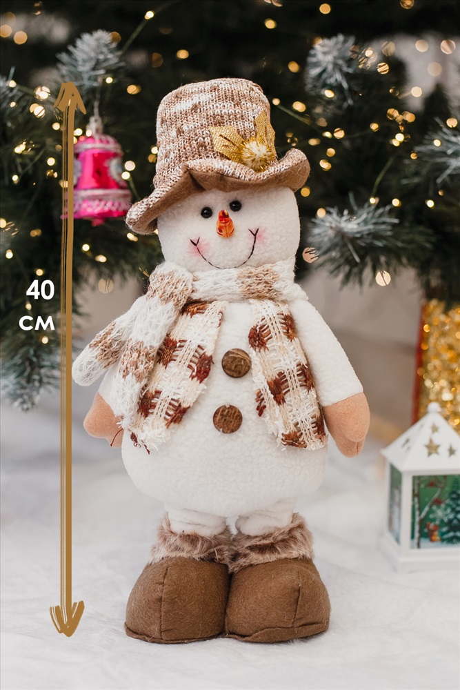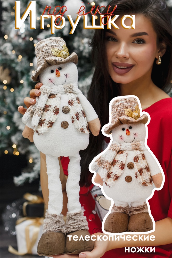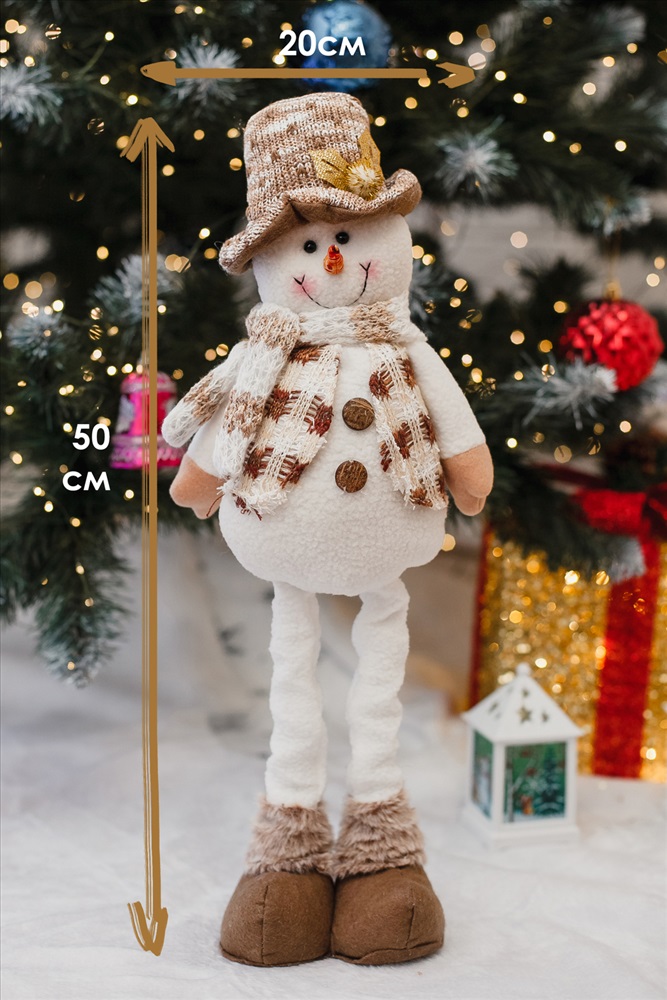 Модель: Игрушка новогодняя с выдвижными ногами Снеговик шляпа бежевый