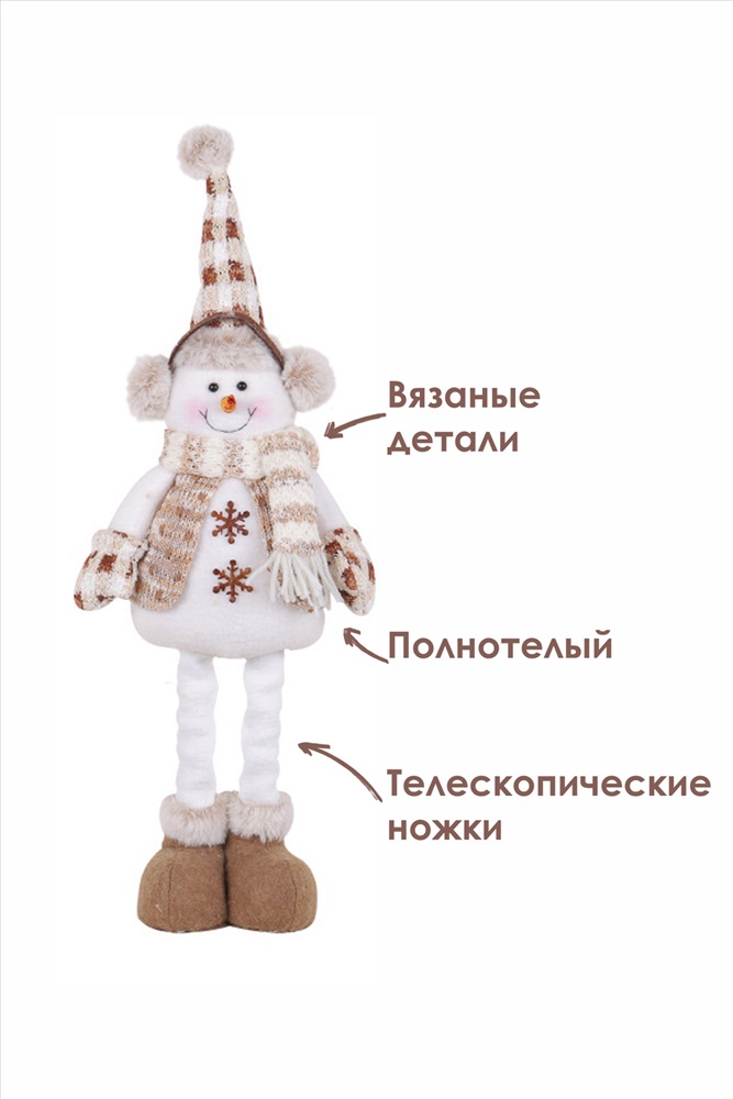 Модель: Игрушка новогодняя с выдвижными ногами Снеговик в наушниках колпак Тип товара: декор новогодний Бренд: Iv-trik-stail Новогодняя игрушка мягкий снеговик с выдвижными ножками эффектная и практичная праздничная игрушка, которая в сложенном виде занимает всего 3423 см, а при раздвинутых ножках превращается в высокий декоративный элемент высотой 48 см. Выполнен из мягкого текстиля с аккуратной отделкой и плотным наполнителем, он легко держит форму, при этом остаётся лёгким и удобным для транспортировки и размещения под ёлкой или в праздничной фотозоне. Выдвижные ножки дают два варианта использования компактное хранение вне сезона и выразительная высота для декора, что делает игрушку отличным подарком, который приятно будет дарить и получать. Универсальный дизайн впишется в классические и современные новогодние интерьеры, игрушка подойдёт для украшения гостиной, детской комнаты, прихожей или коммерческих витрин. Уход простой достаточно протирать мягкой сухой или слегка влажной тканью и хранить в сухом прохладном месте вдали от прямых источников тепла. При размещении рядом с детьми рекомендуем следить за мелкими декоративными деталями и устанавливать снеговика на устойчивой поверхности. Идеальная идея для тех, кто ищет красивый, компактный в хранении и в то же время эффектный подарок под ёлку, который создаёт праздничное настроение и добавляет уюта в дом. Таблица размеров и веса