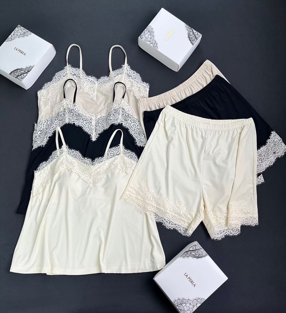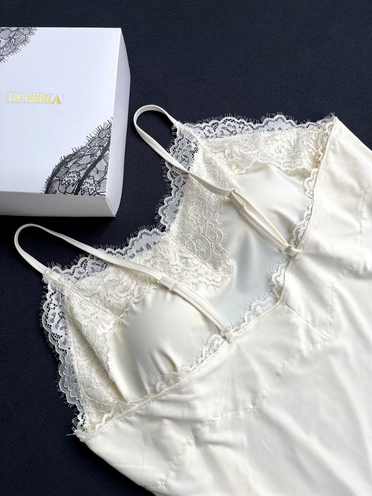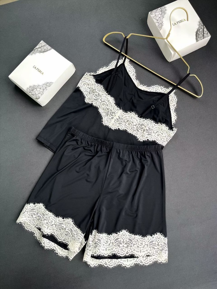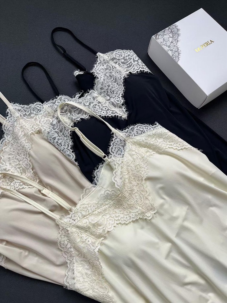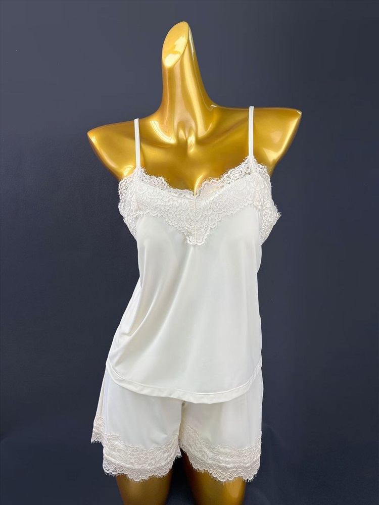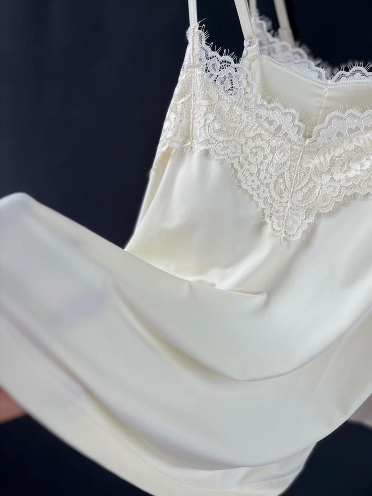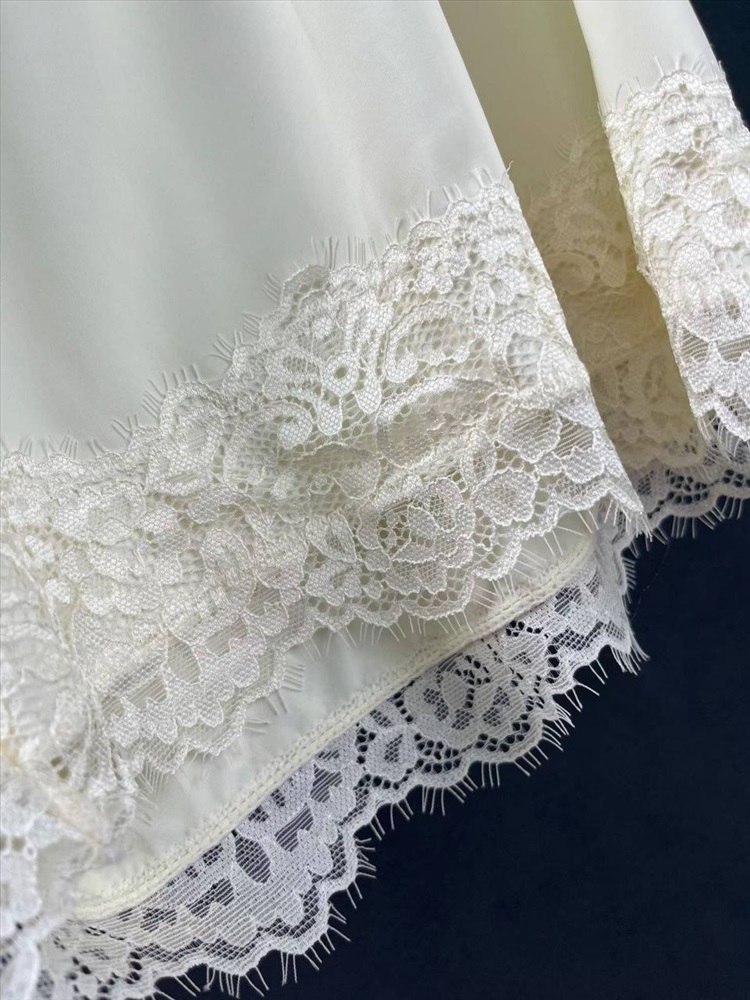 Вырез и подолы украшены красивой кружевной отделкой.