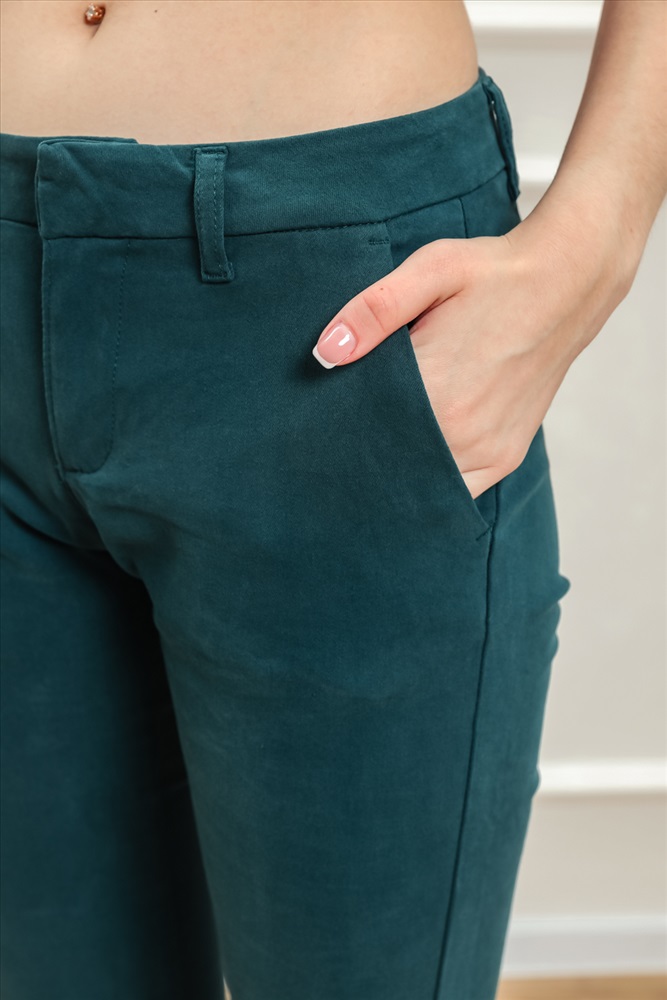 Застежка: молния | пуговицы Женские брюки выполнены из плотной хлопковой ткани с добавлением полиэстера для прочности и долговечности.