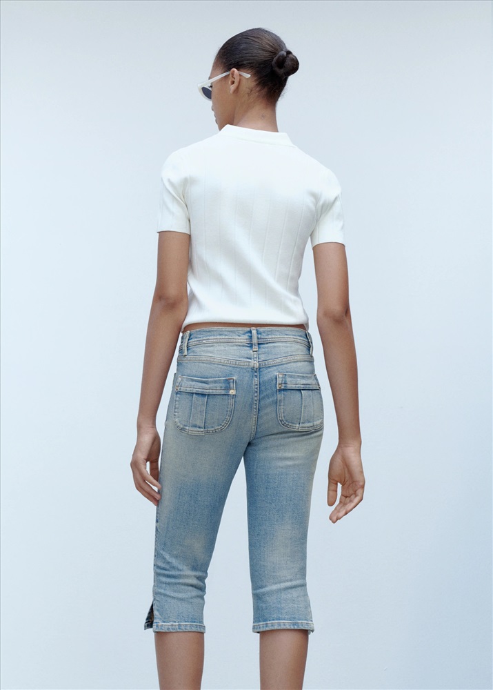DescripciónTejido de algodón estilo tejano vaquero. Tiro bajo. Diseño capri. Dos bolsillos de parche en la parte delantera. Trabillas. Bajo con aberturas laterales. Total look. Cierre delantero de cremallera y botón. Largo interior 45,5 cm. Комментарии к товару