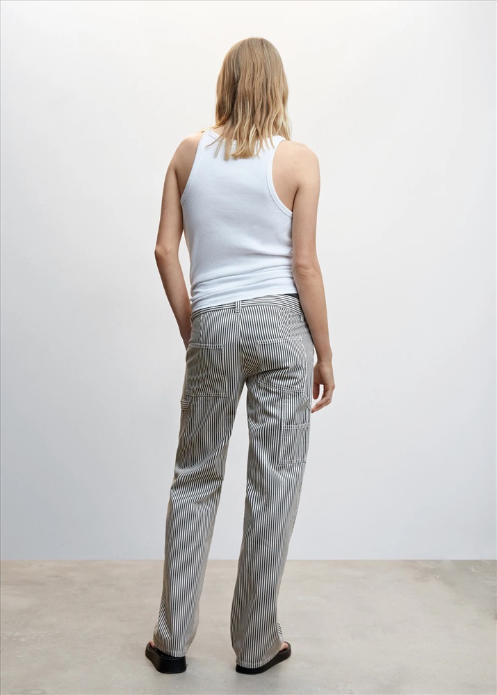 Tejido de algodón estilo tejano vaquero. Diseño cargo. Diseño largo. Diseño de rayas. Tiro bajo. Trabillas. Dos bolsillos cargo. Dos bolsillos de ribete laterales. Dos bolsillos de solapa en la parte posterior. Cintura elástica. Banda de punto elástica en la cintura para mayor comodidad y sujeción. Sin cierre. Botón decorativo. Largo interior 81,5 cm. Te recomendamos comprar tu talla habitual. Proporciona comodidad y libertad de movimiento. Premamá.