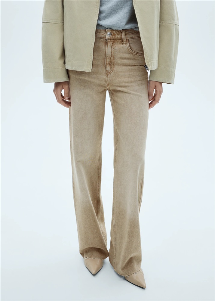 Tejido de algodón estilo tejano vaquero. Diseño largo. Diseño wideleg. Cinco bolsillos. Trabillas. Tiro alto. Cierre delantero de cremallera y botón. Bajo deshilachado. Largo interior 84,5 cm.