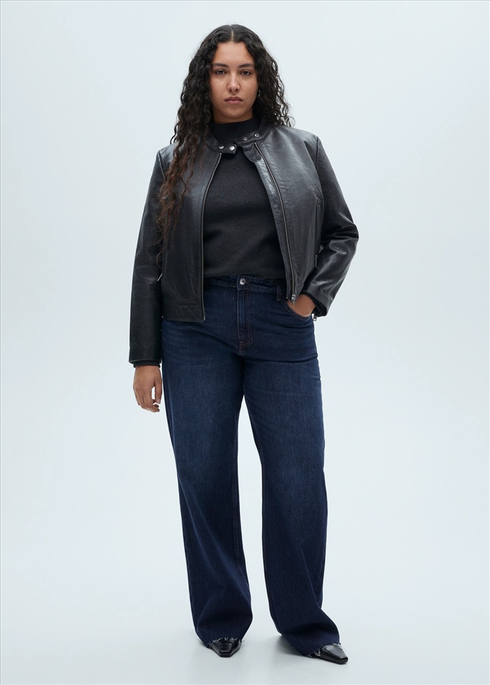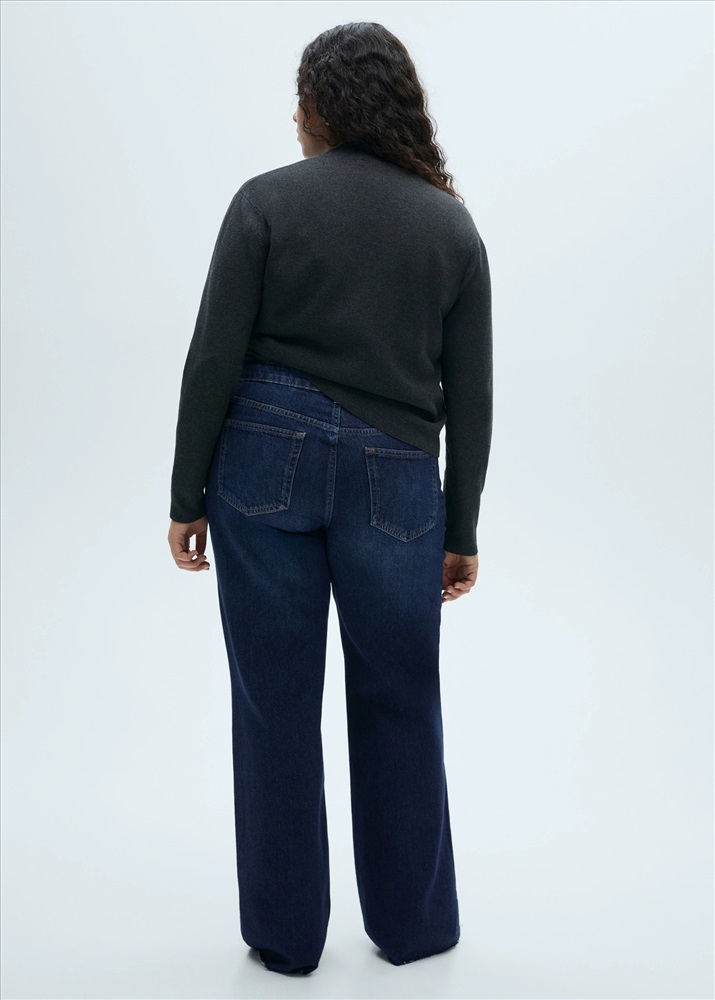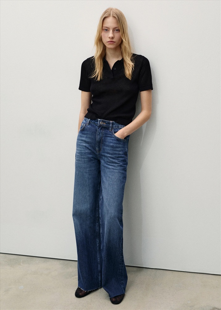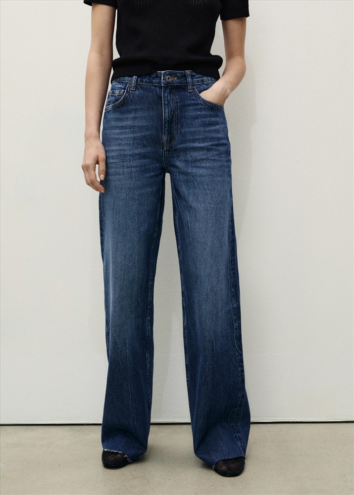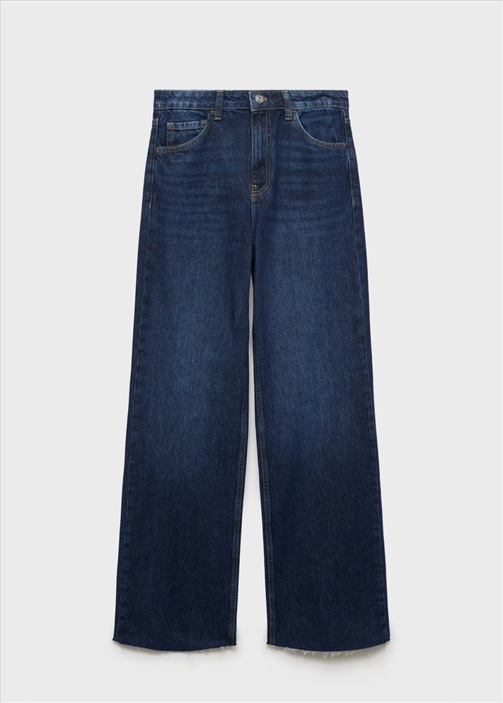 Tejido de algodón estilo tejano vaquero. Diseño largo. Diseño wideleg. Tiro alto. Cinco bolsillos. Trabillas. Cierre delantero de cremallera y botón. Bajo deshilachado. Largo interior 84,5 cm. Disponible Plus.